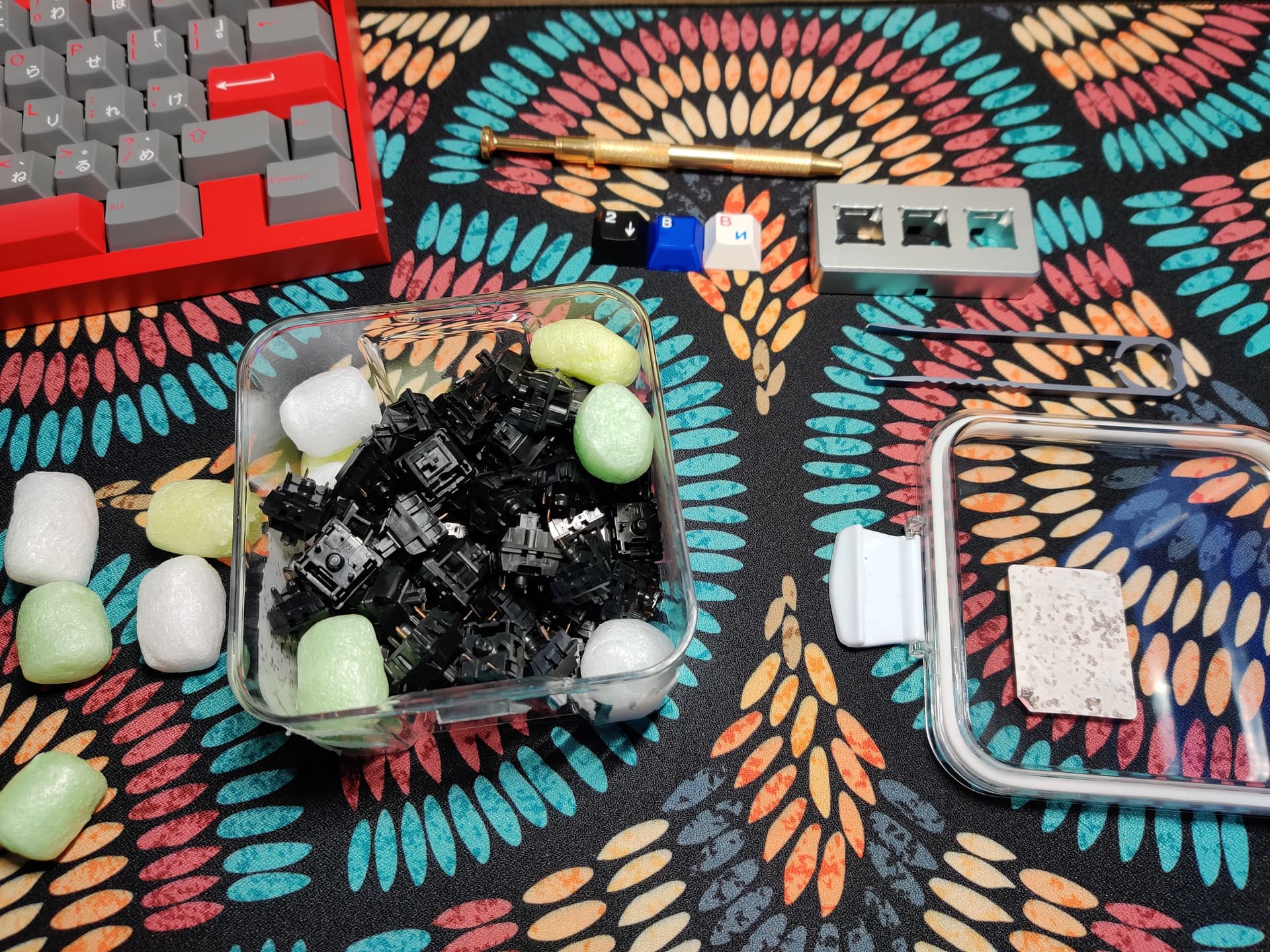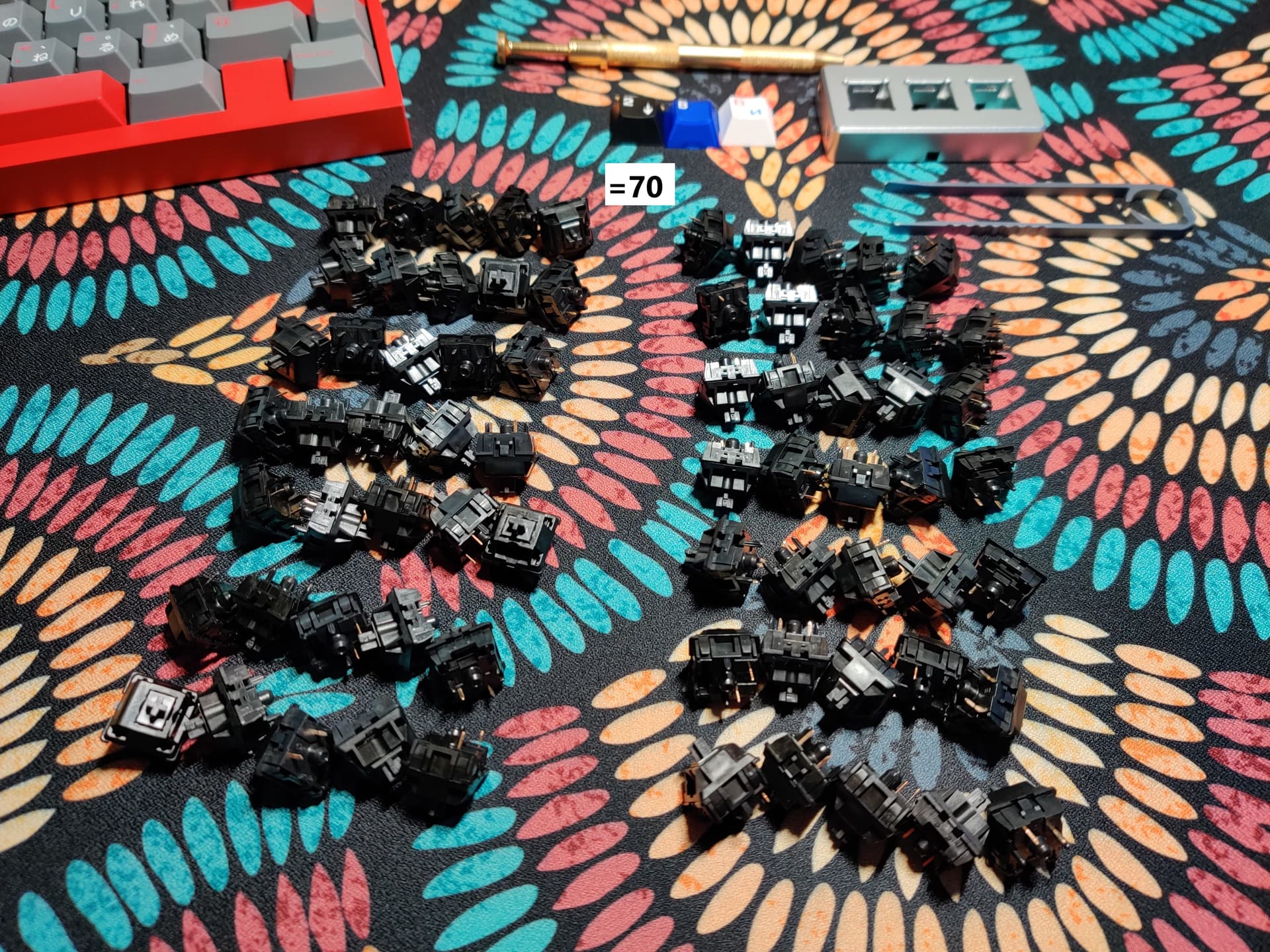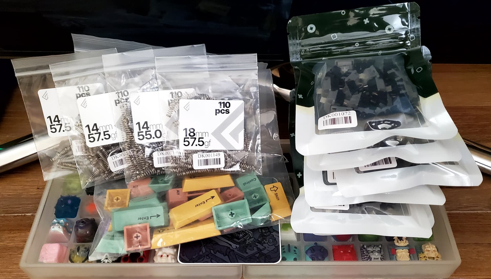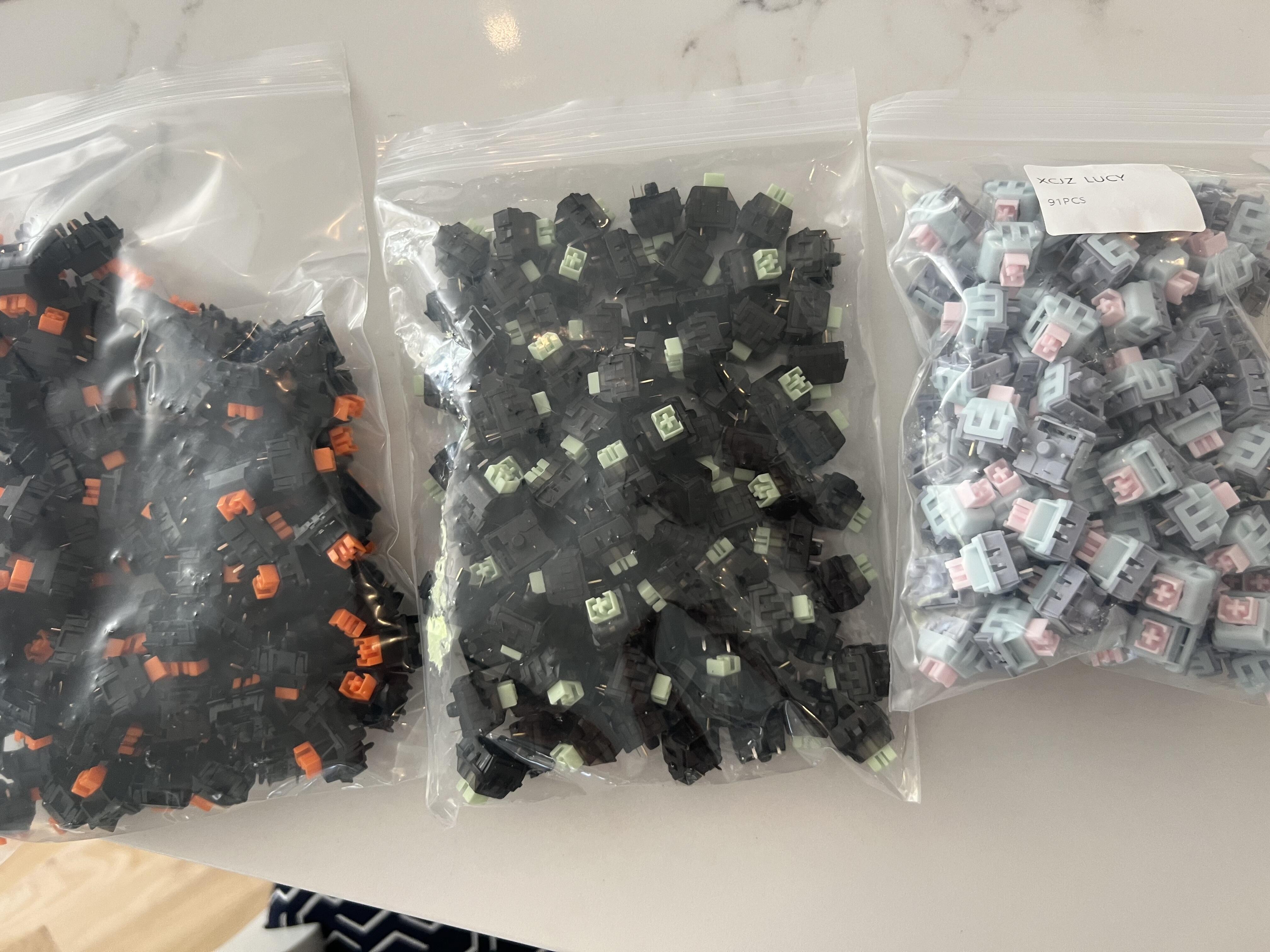 Trash switches (Haimu linear) from CBKBD, XCJZ mustard green and Lucy switches (both by LICHICX I think?) from AliExpress. Ordered 2 weeks apart and arrived on the same day. ![]()