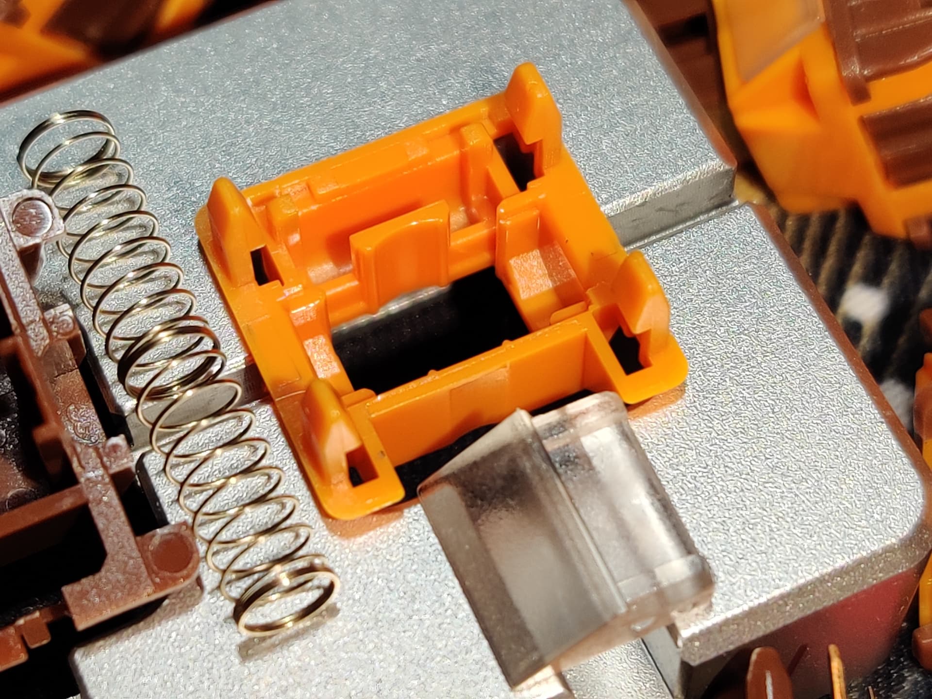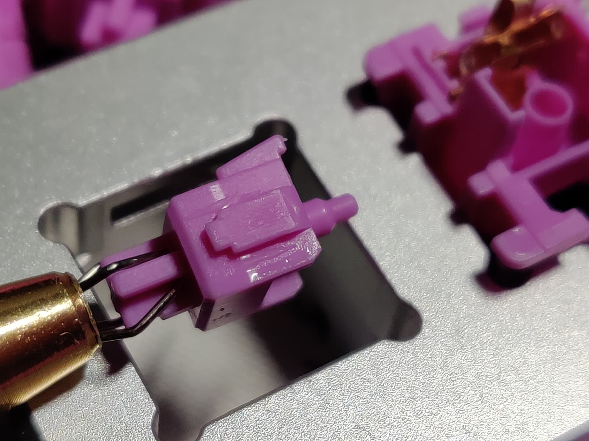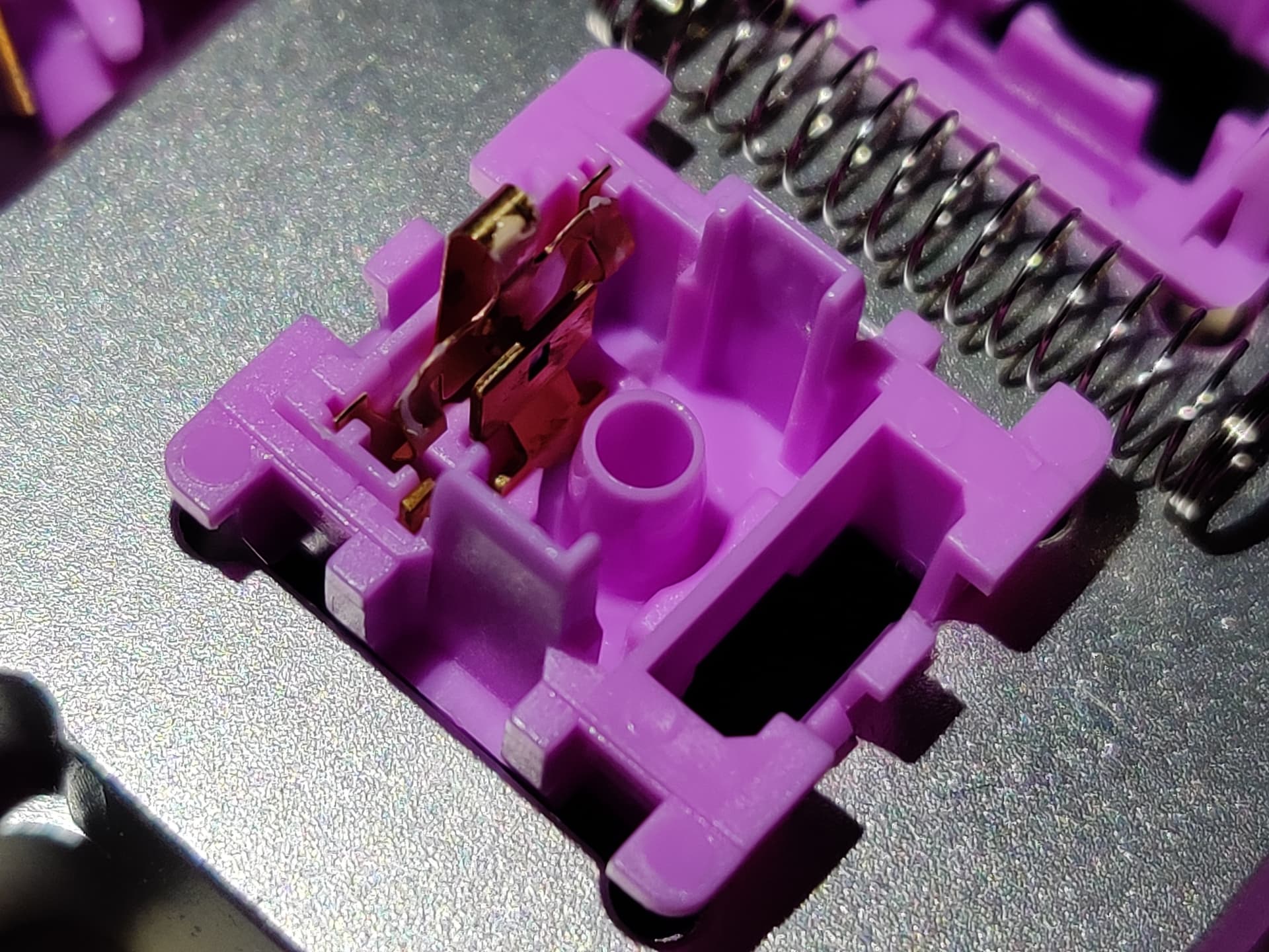 so they need to be re-lubricated. BUT this is optional. You can leave it if you like bright sound. There is full POM material here. But there is no friction typical for these types of switches. Well, maybe after relubrication it will. Now this is not the case.