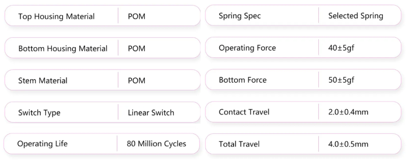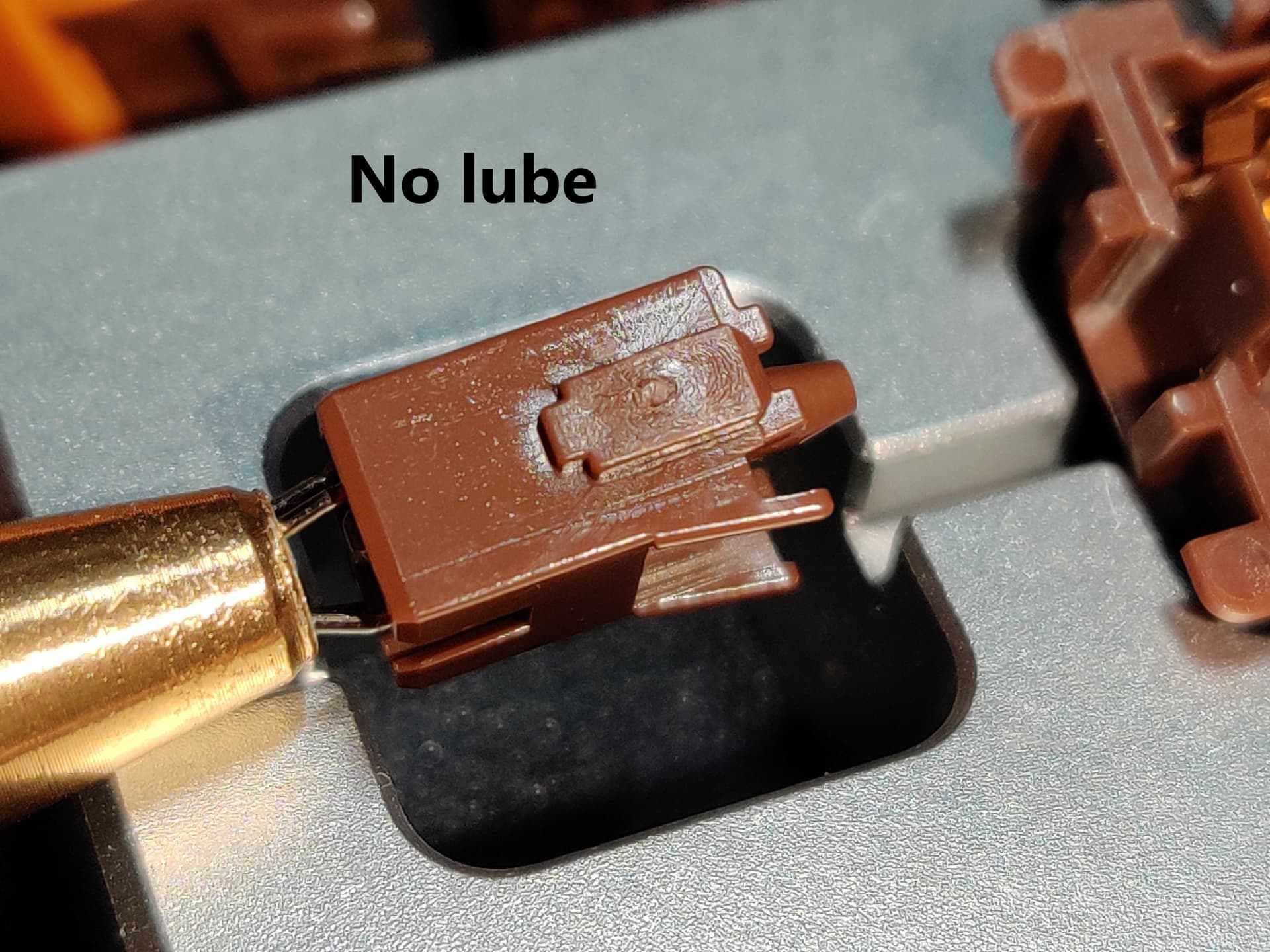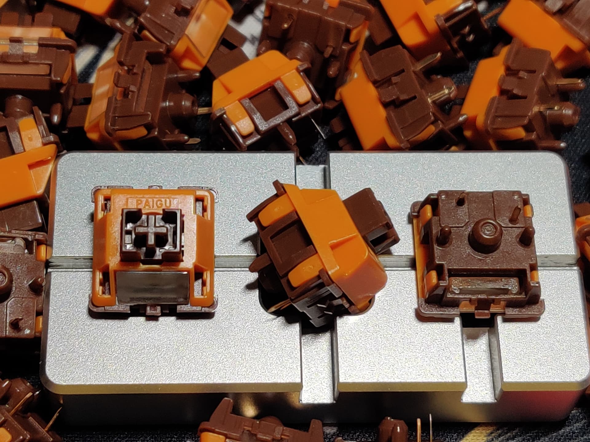so they need to be re-lubricated. BUT this is optional. You can leave it if you like bright sound. There is full POM material here. But there is no friction typical for these types of switches. Well, maybe after relubrication it will. Now this is not the case.