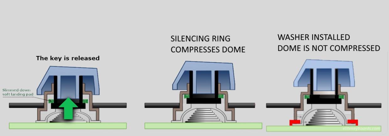 I opted to use the slightly thicker silencing pads. I think that was a poor choice. It feel like the keypress is too short. Also, silencing doesn’t mean a lot when you get rattle from the housings.