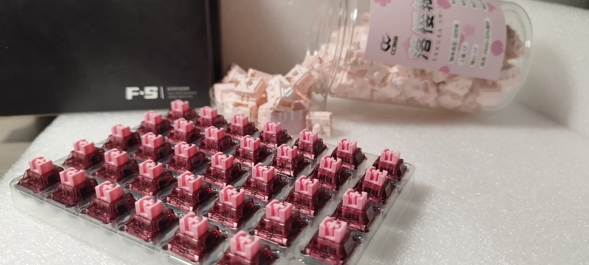 - CC Sakura. Manufactured by LCET, or Xunlei since they had to change their Name, as far as i can tell. At least the molds match my LCET strawberry very, very well. They have LY stem, LY top and “PA66 + 30% fiber” bottom. It feels like there is a tiny bit of scratch, or maybe that’s just the spring, but otherwise not bad. minimal stem wobble and no housing wobble. the winglatch is also a lot easier to open than something like outemu. LY seems to be quite loud i’ve noticed.