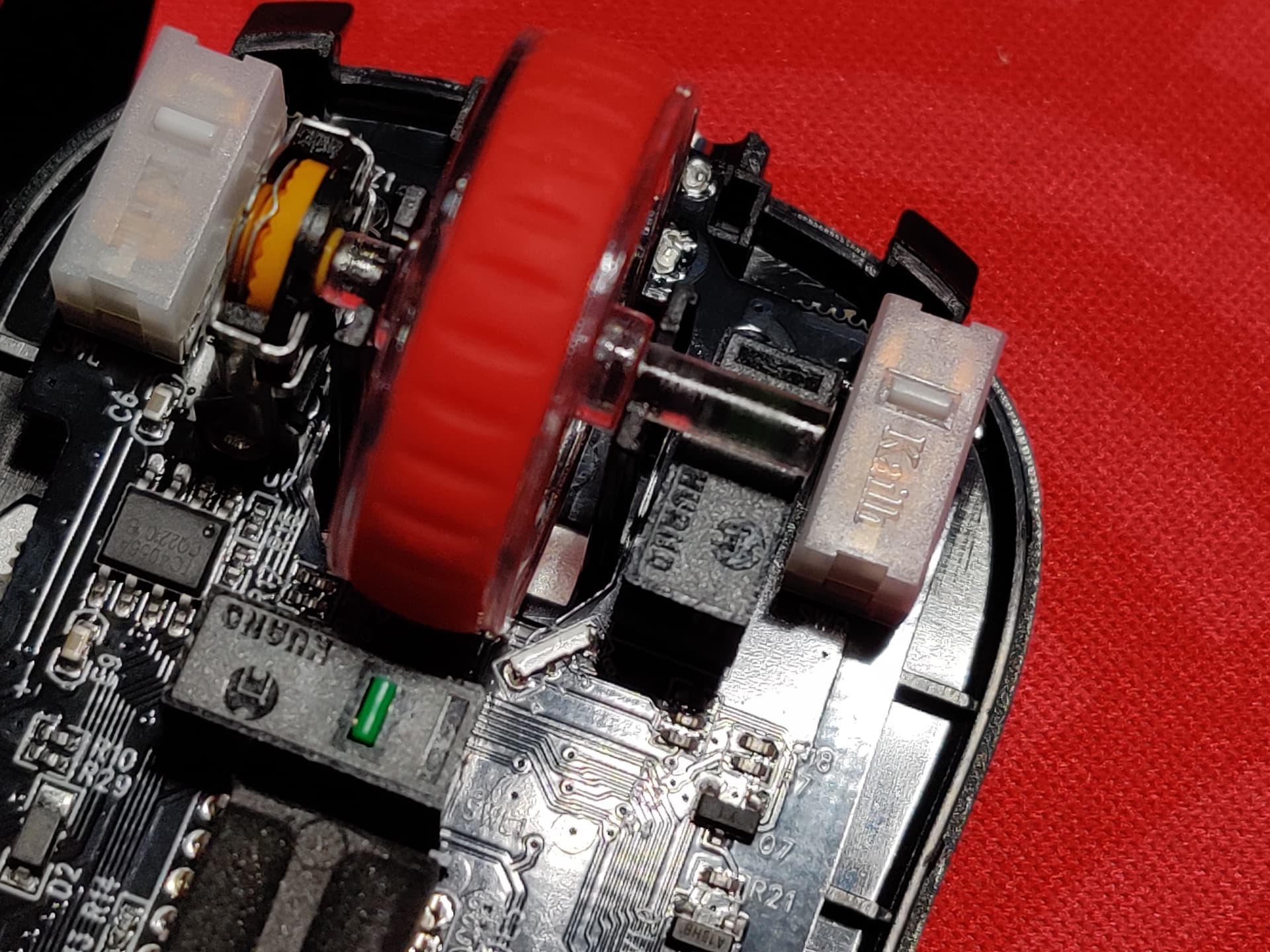 b. Gold-plated contact points: Featuring gold-plated contact points, the Sword GM X micro switch delivers unparalleled durability and longevity, with a mechanical lifespan of up to one hundred million clicks.