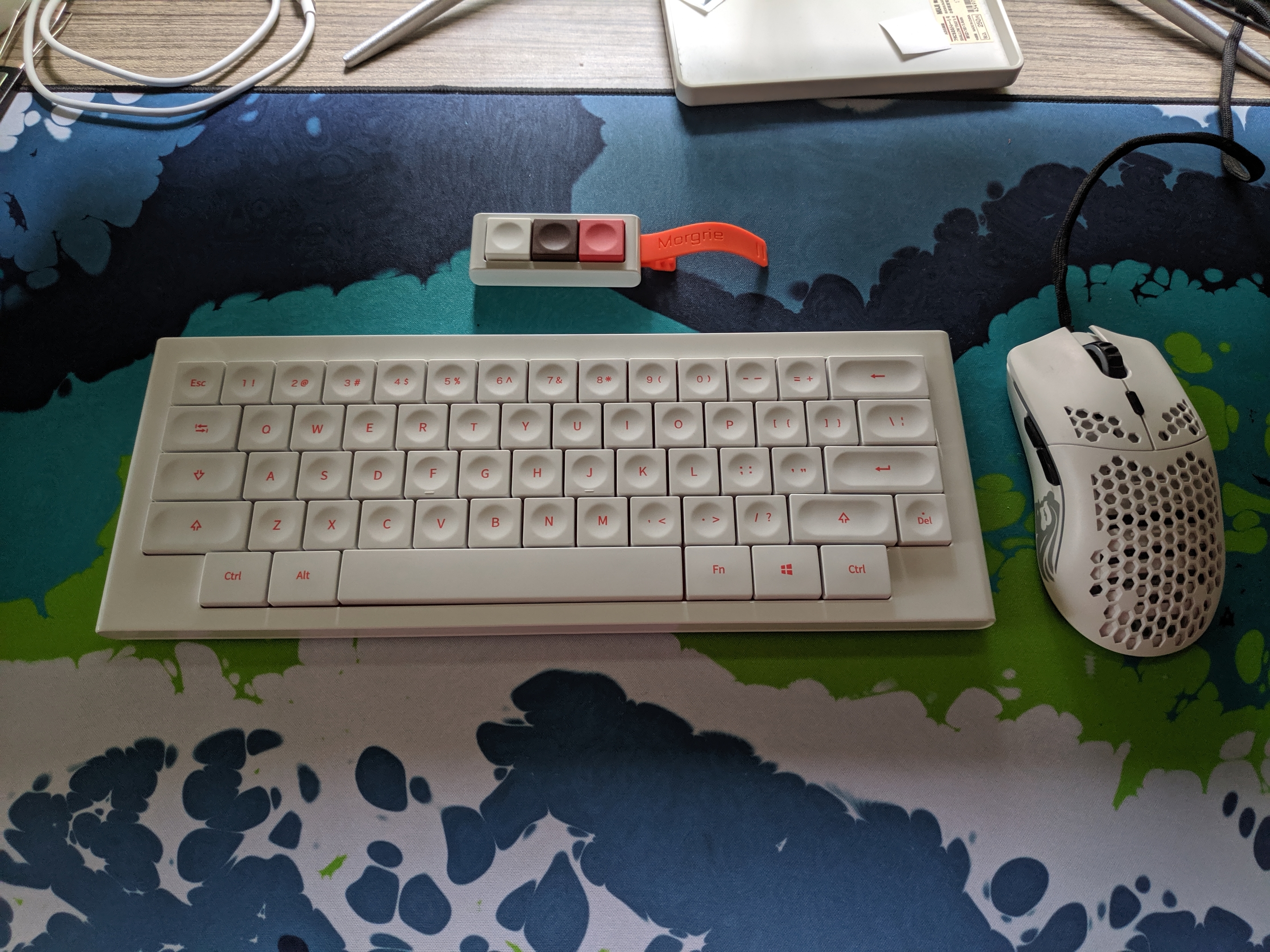 [Not pictured]: Silent Inks and a Cherry profile black-on-slate PBT keyset; both destined for the Durgod Hades 68 that I coffeeād a while back. Mistakes are really just opportunities in disguise, right?