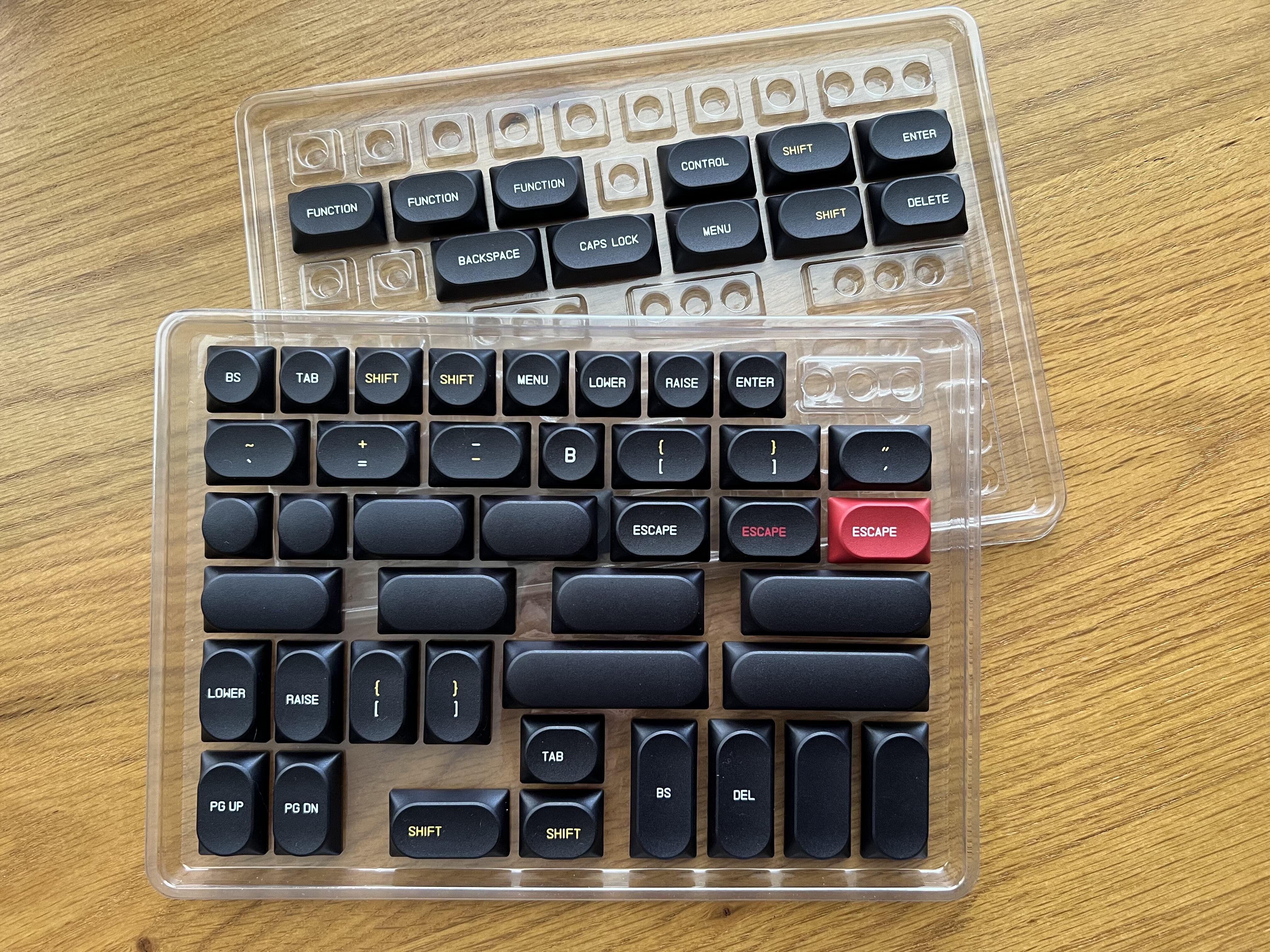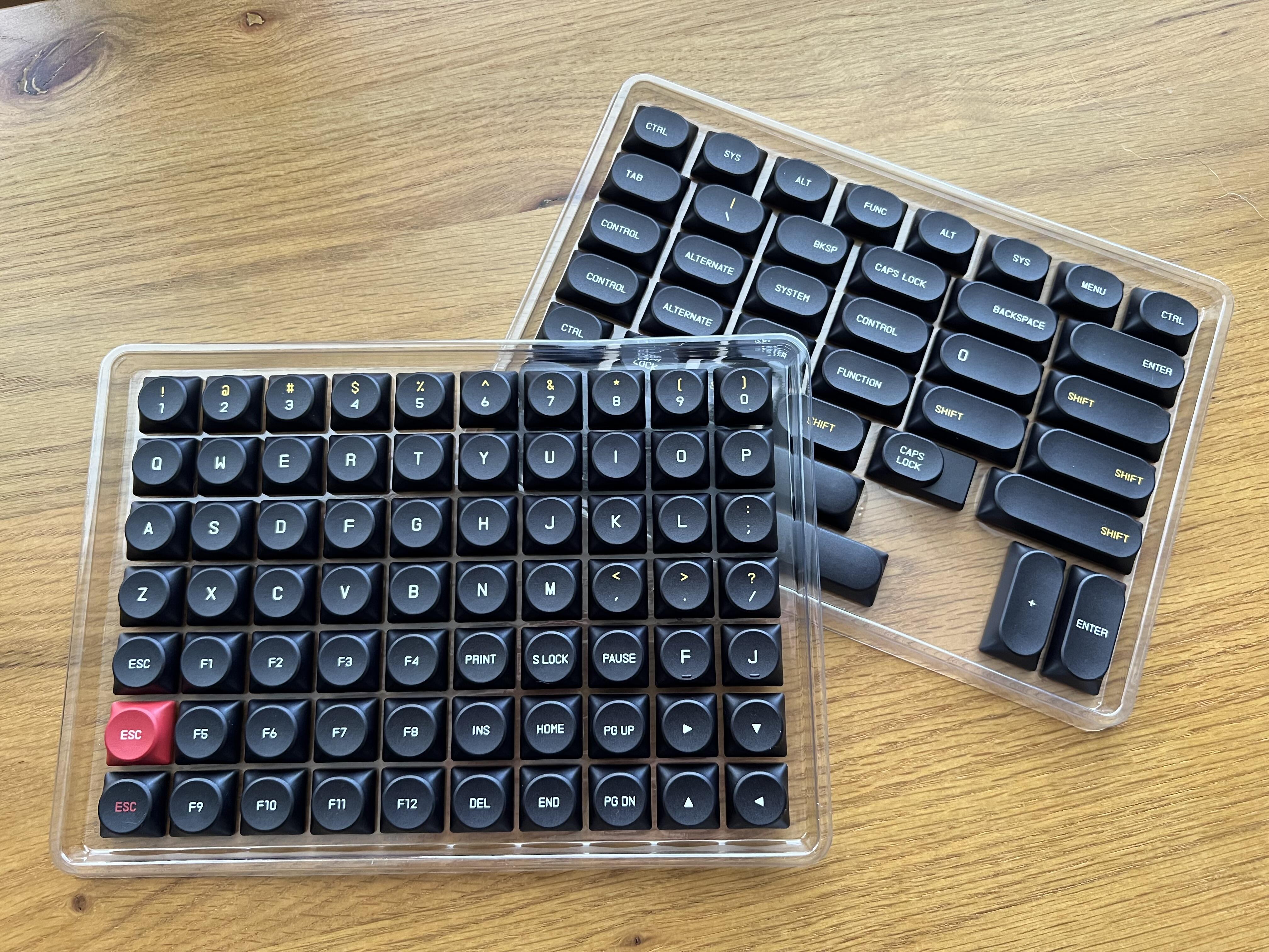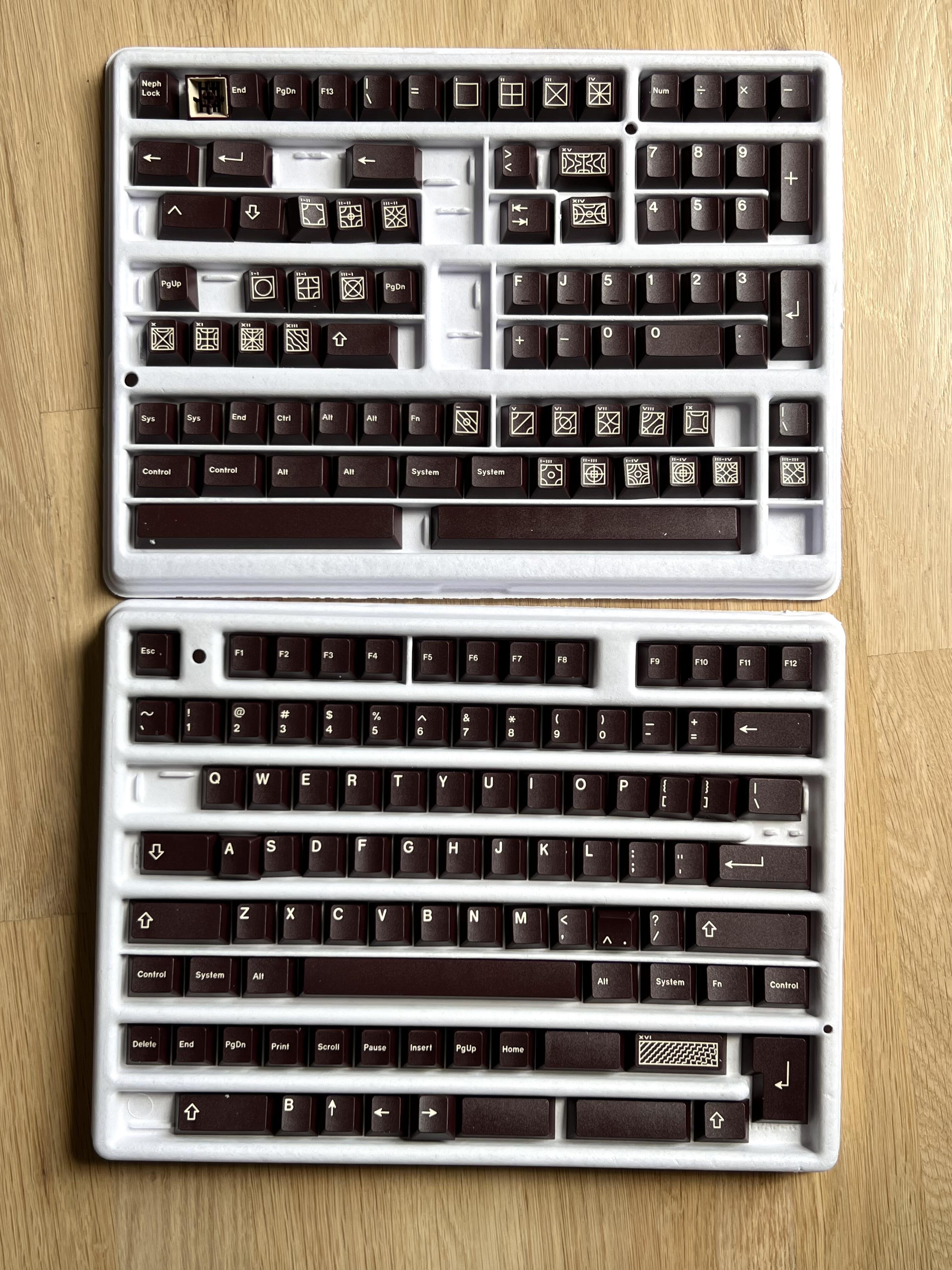 The SLK Dessau Dark base and compact kits I ordered from CannonKeys arrived today! Definitely seems like my sets have a couple alignment issues, but I like them otherwise.