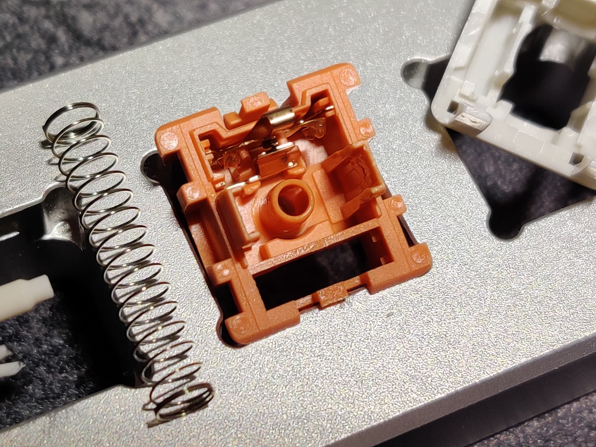 The sunset gleam feel nice. Smooth and stable. A bit higher pitched than I would like on bottom out. I believe they have added fiberglass in the mixture. The MZ switches sound super good and I love the spring. But the the wobble is pretty bad. On par or worse than early Gateron.