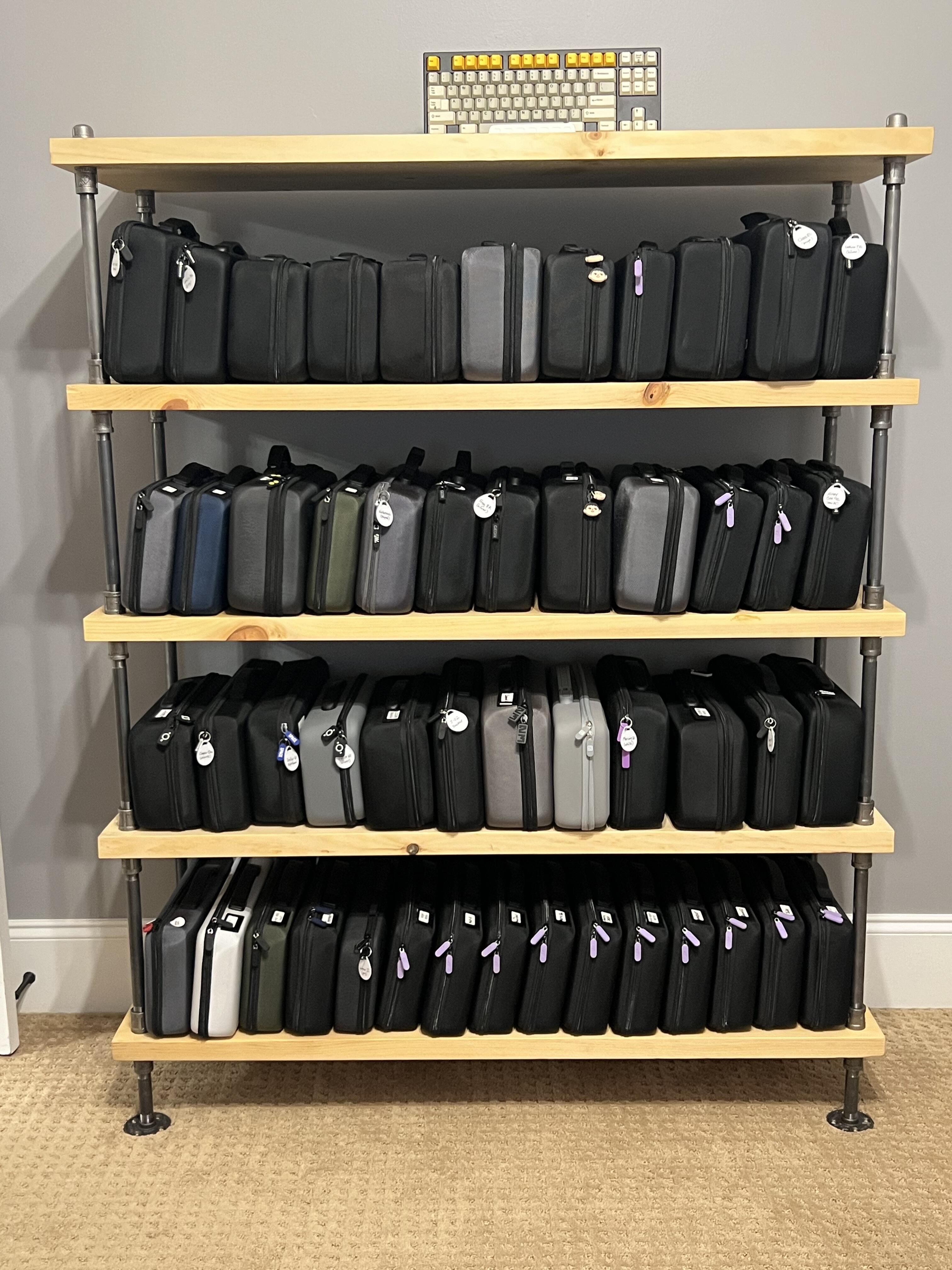 I realized a long time ago that I’d need to store them this way to have enough room, so that’s why I started getting cases for most of them. Now, the problem is that shelf only holds 1/4 or less of what I own. And we’re not discussing the totes of keycaps and switches. I think this is a great shelf but I simply need to stop collecting, or get a studio for the collection. ![]()
