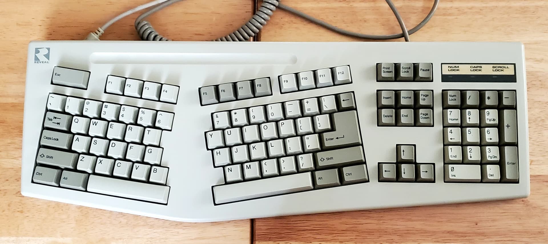 Now this is super cool! Got that Reveal ergo ALPS board in today! It’s basically NOS, but I didn’t get the box with it. I’d be surprised if anyone typed more than a sentence on this from how clean it is, how little wear there is on it, & how great the switches feel! The model no. is KB-7061 so it is a Chicony rebrand. The switches are SKCM White ALPS, in a good 9.8 out of 10 condition (they feel even better than the SKCM Whites on that NOS ALPS numpad I got!). Then caps are very nice thin double shot ABS. Don’t think they’re DCS though, possibly OG Tai-Hao caps? Overall very happy with this find, it was bit costly thanks to shipping from the Netherlands but not like you can find these boards almost brand new like this anytime so money well spent IMO!