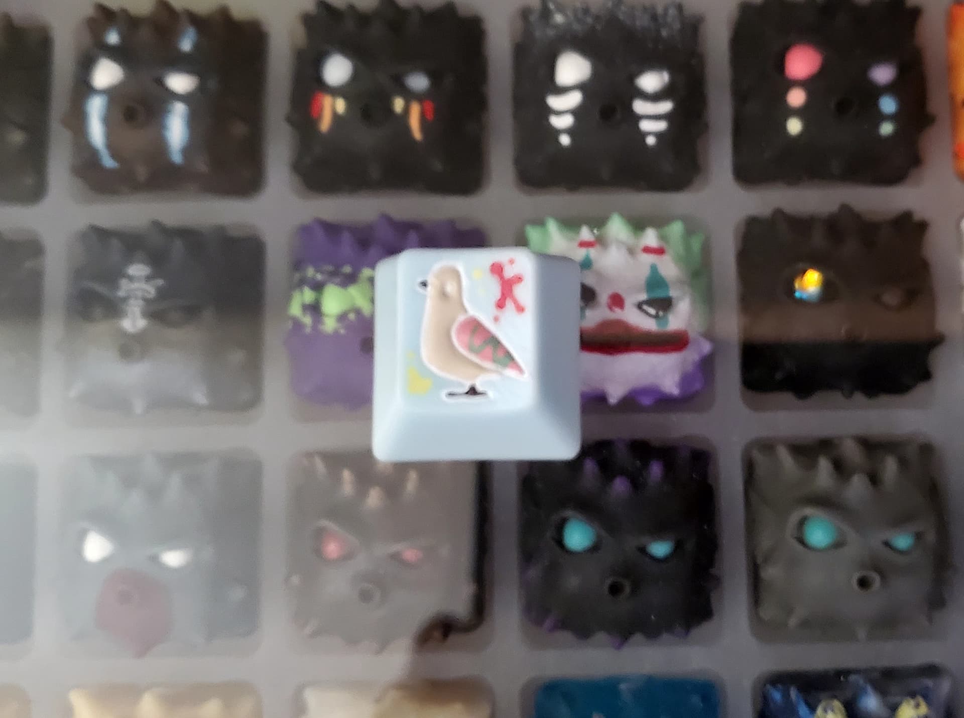 I also got a fair number of History of Violets novelties, enough to see that it is a really nice colorway and the novelties are well designed. Finally – good lord! – SP’s PBT SA are absolute units of keycaps. Somebody was selling their personal set of kit-assemble dye sub on eBay, and I sort of regret not bidding now.
