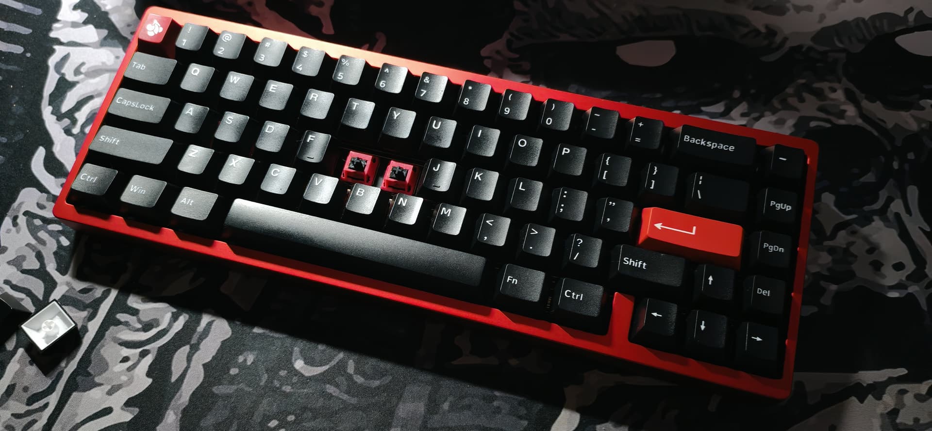 Got a lucky65v2 because it was a steal, and because it was unique. Someone made 2 into 1, so it has a black bottom case and red top case. Perfect for an EVA or Zaku build. Threw in some Valkyrie Cranberry switches and a Capturer WoB set i had around, but i might buy one of those EVA / Zaku keycaps floating around. There’s one Zaku set with some round design with transparent pieces that looks unique, maybe that one. Also maybe a copper plate.
