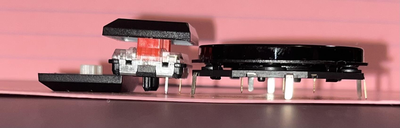 The jogwheel’s height above the PCB is about the same as a Kailh Choc switch, so they might go well together. Dunno yet how to arrange the switches around the wheel, might get some clearer ideas when I have some actual devices that I can push around on my desk.