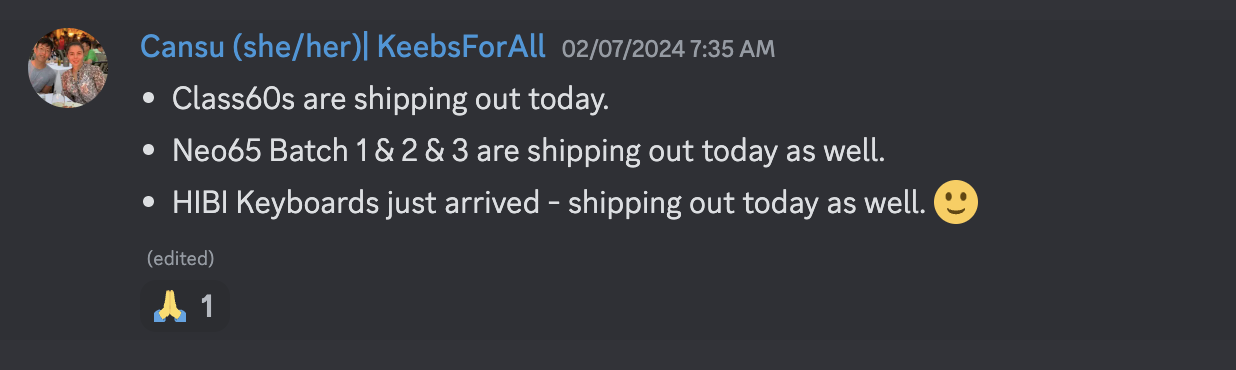 KeebsForAll finally shipped Class60 a week ago. Hate that I had to go to KFA Discord to find out. Couldn’t they just rig Discord to update their website? Of course, the fact that KFA deleted Class60 page after GB ended is a problem.