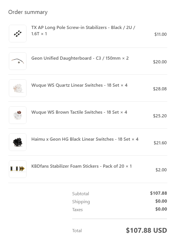 - Switches… LODK wind chime, A-Key F-Switch blue, KTT retro red, space studio loopy, togar gorilla and outemu eureka switches, with more switch orders to come. I’m at 119 full sets of switches now. I think i need to stop at some point… right? right?!