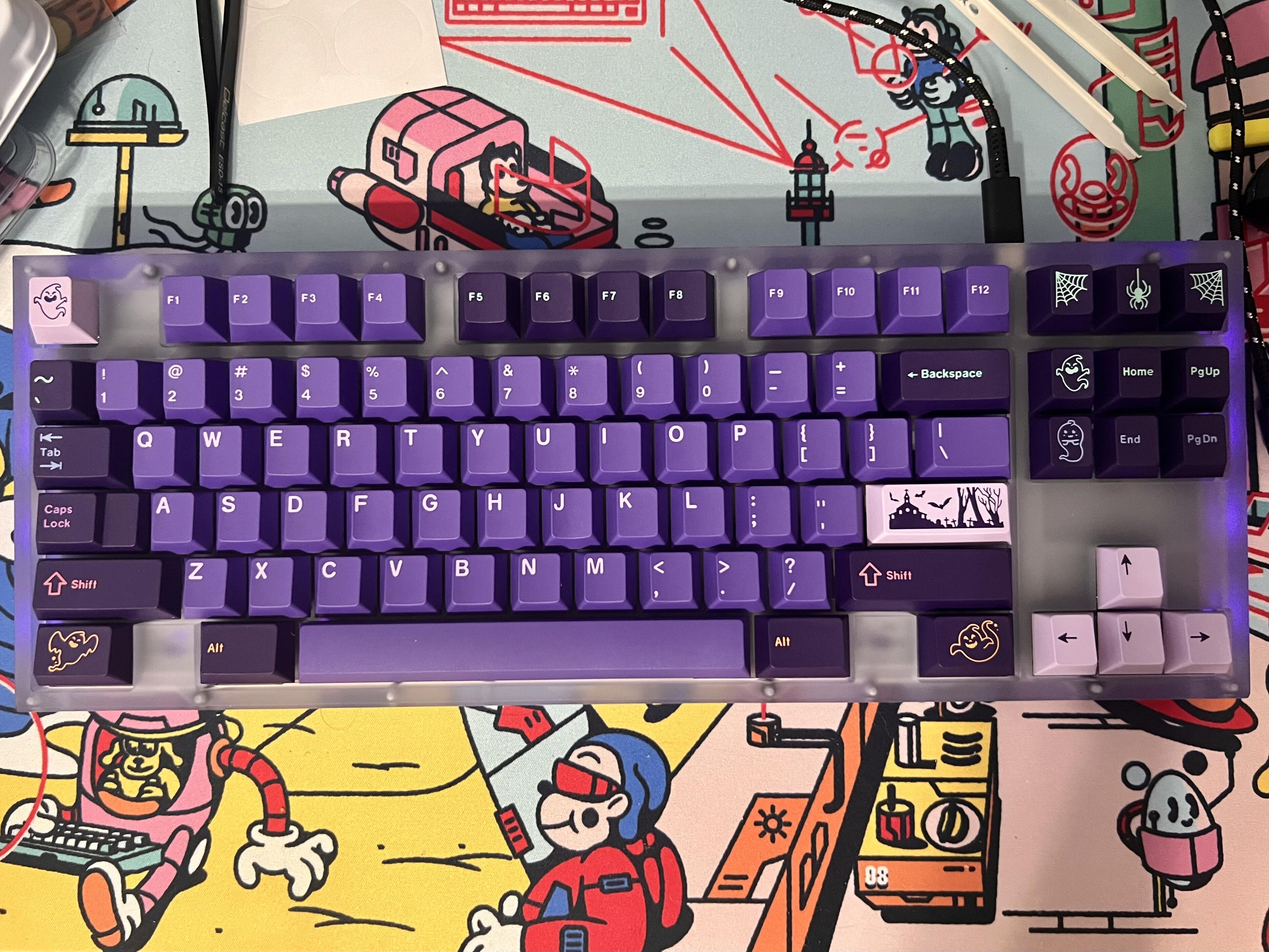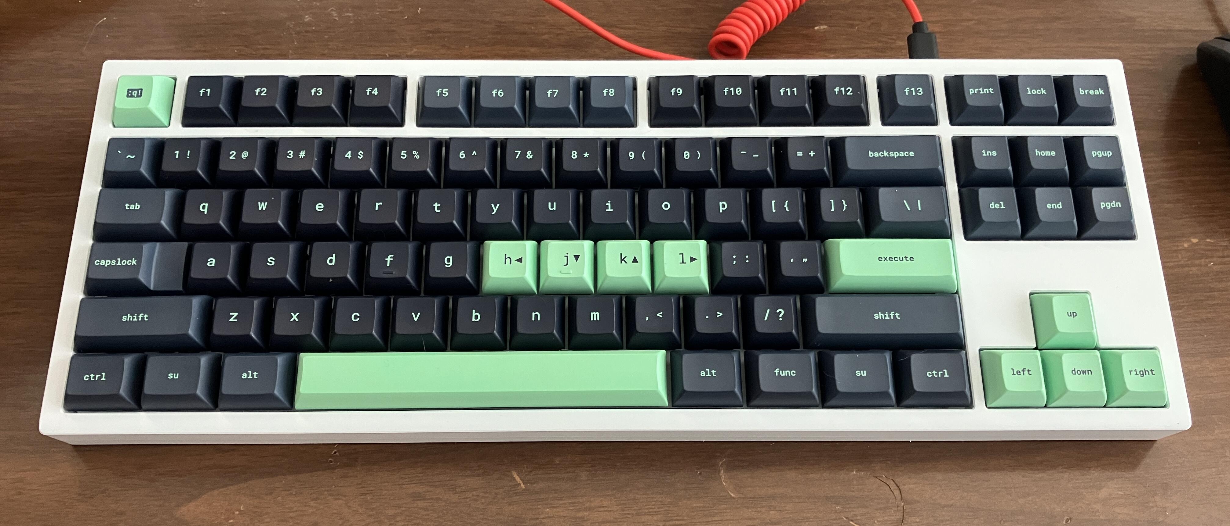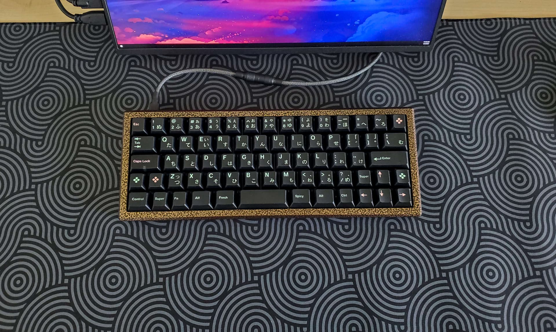 I went plateless with this build, but taped up the flex cuts. Soldered in some homemade Butter Browns and then topped it all off with GMK DualShot 2 since I picked up the colored mods and spacebars during their recent Happy Hour sale.