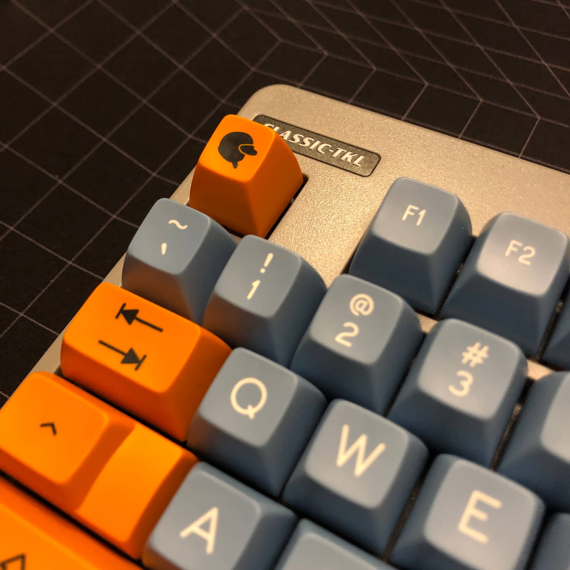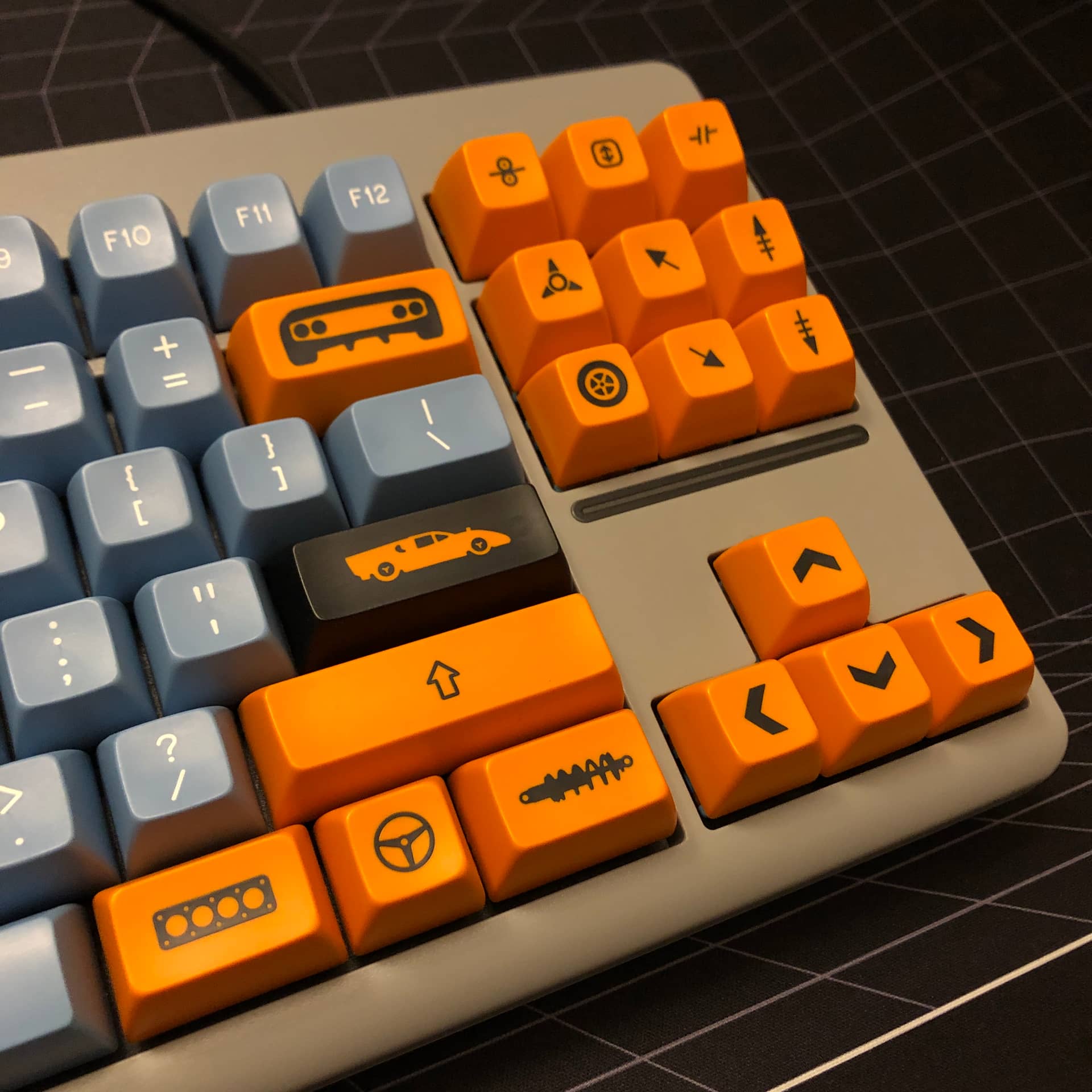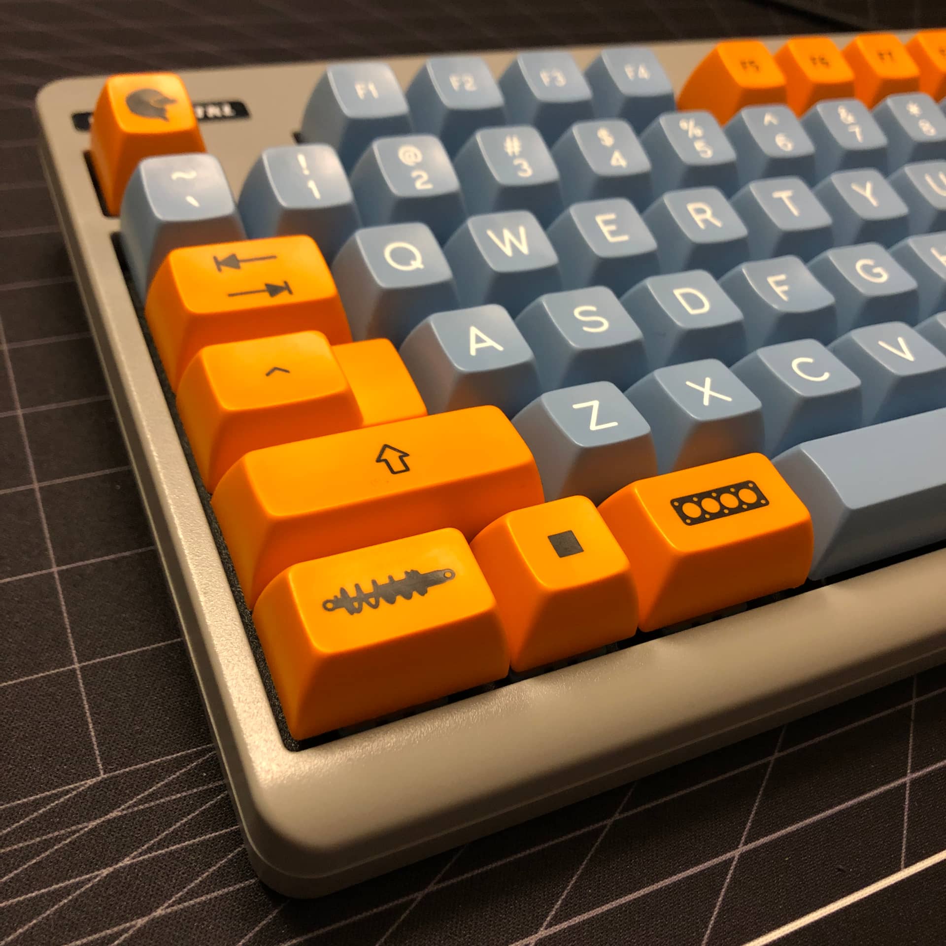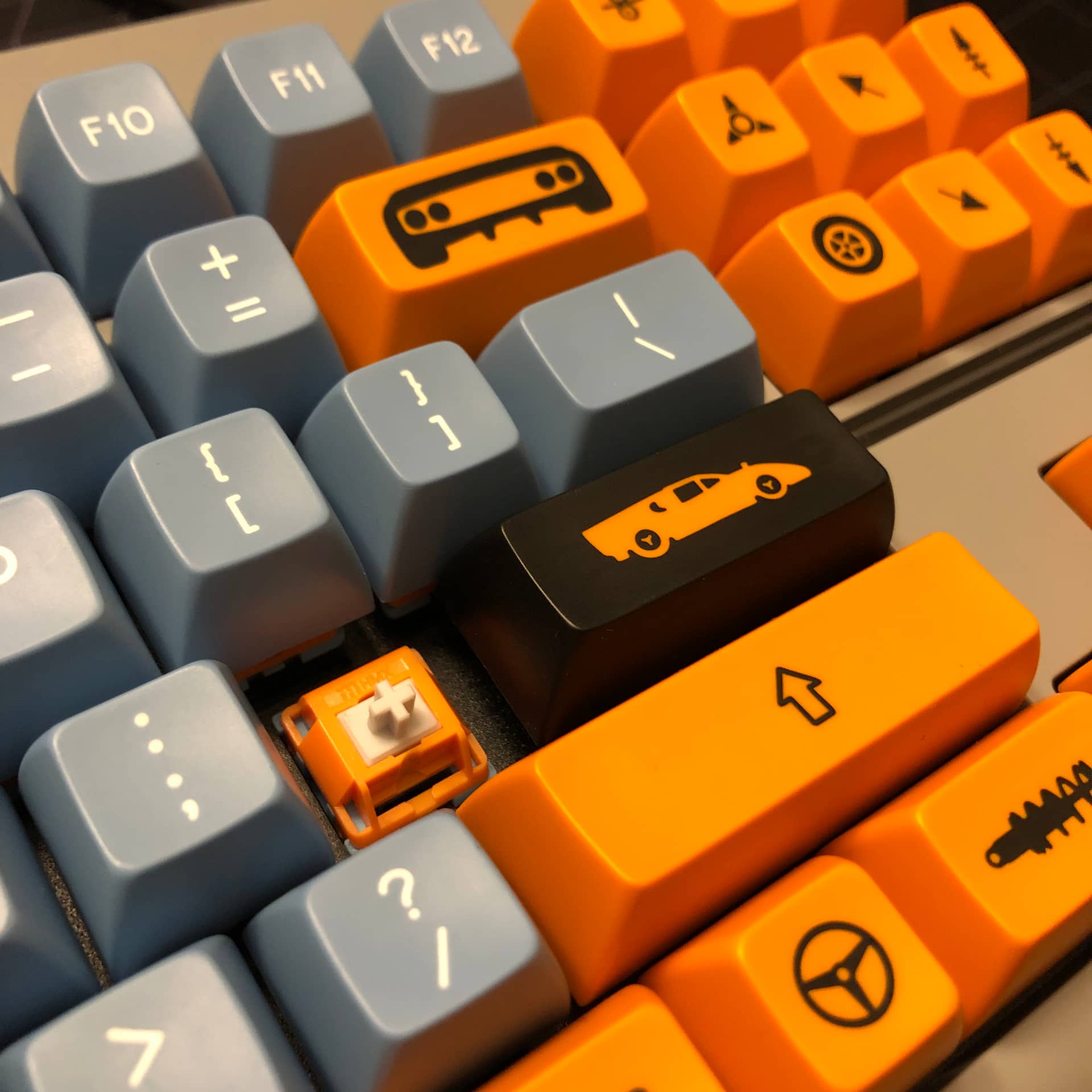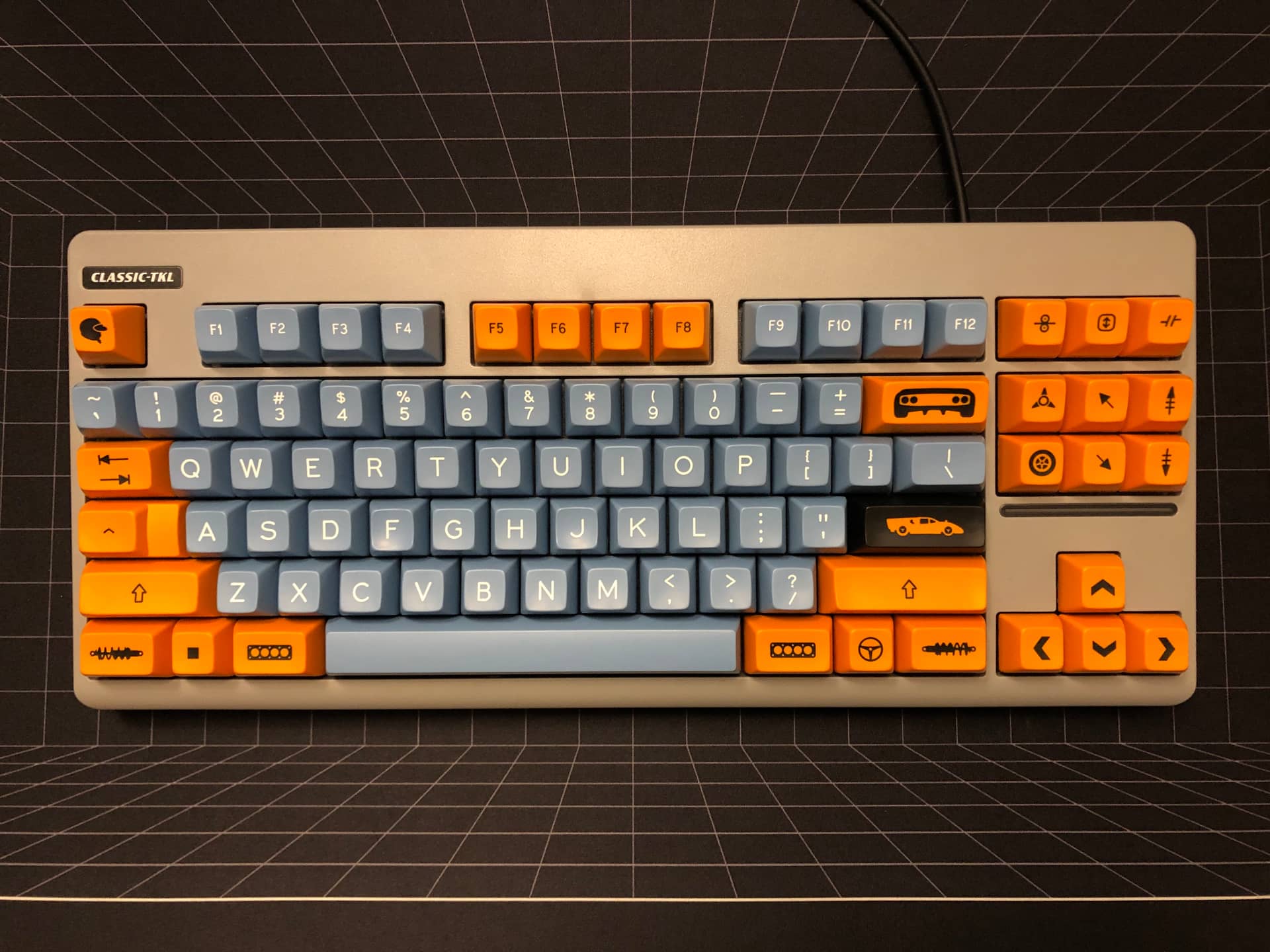Rebuilt my Classic-TKL with HMX Gulf switches and SA Motorsport Selectric; colorway designed & set run by @madmax13, novelty icons designed by myself