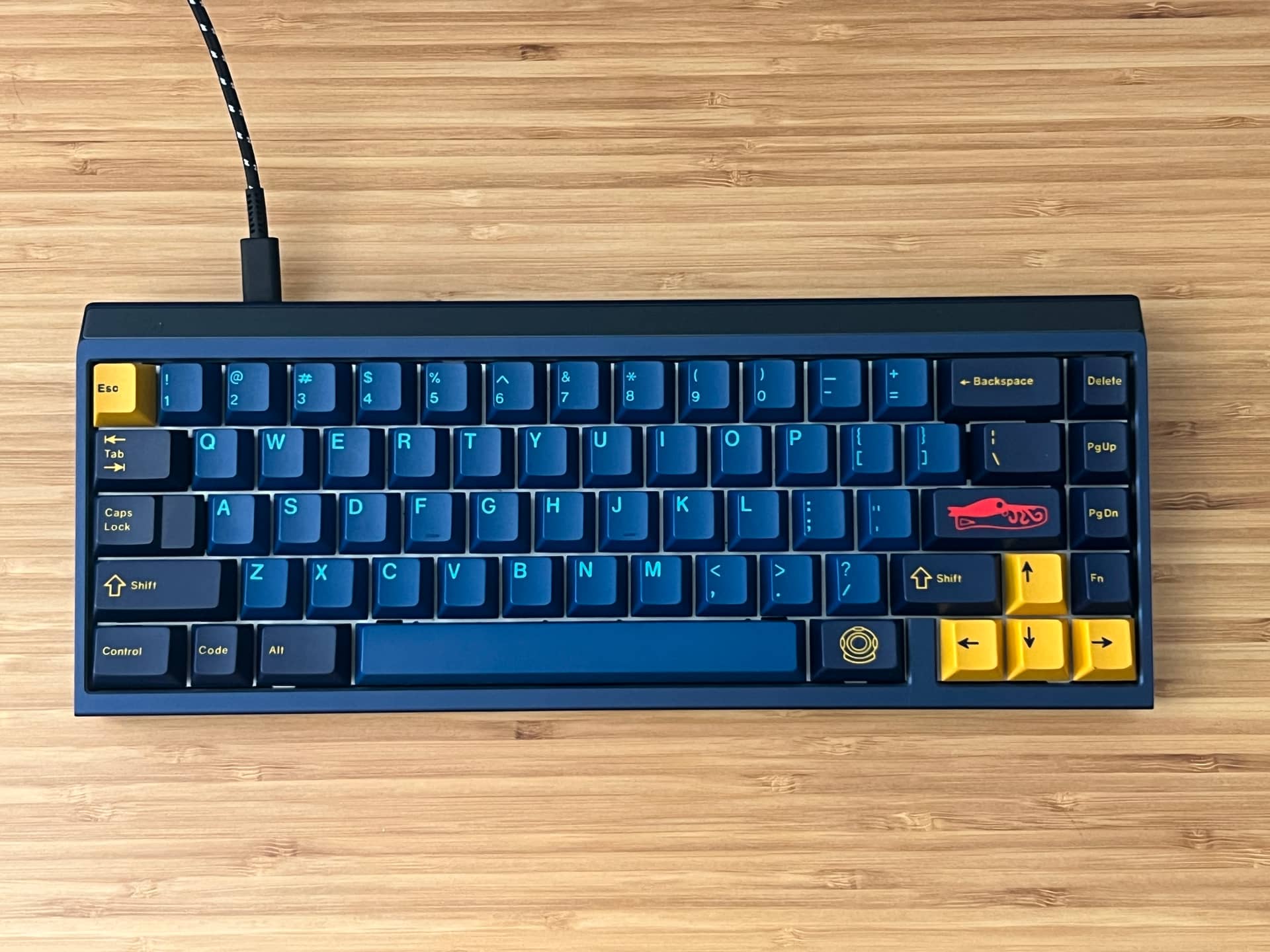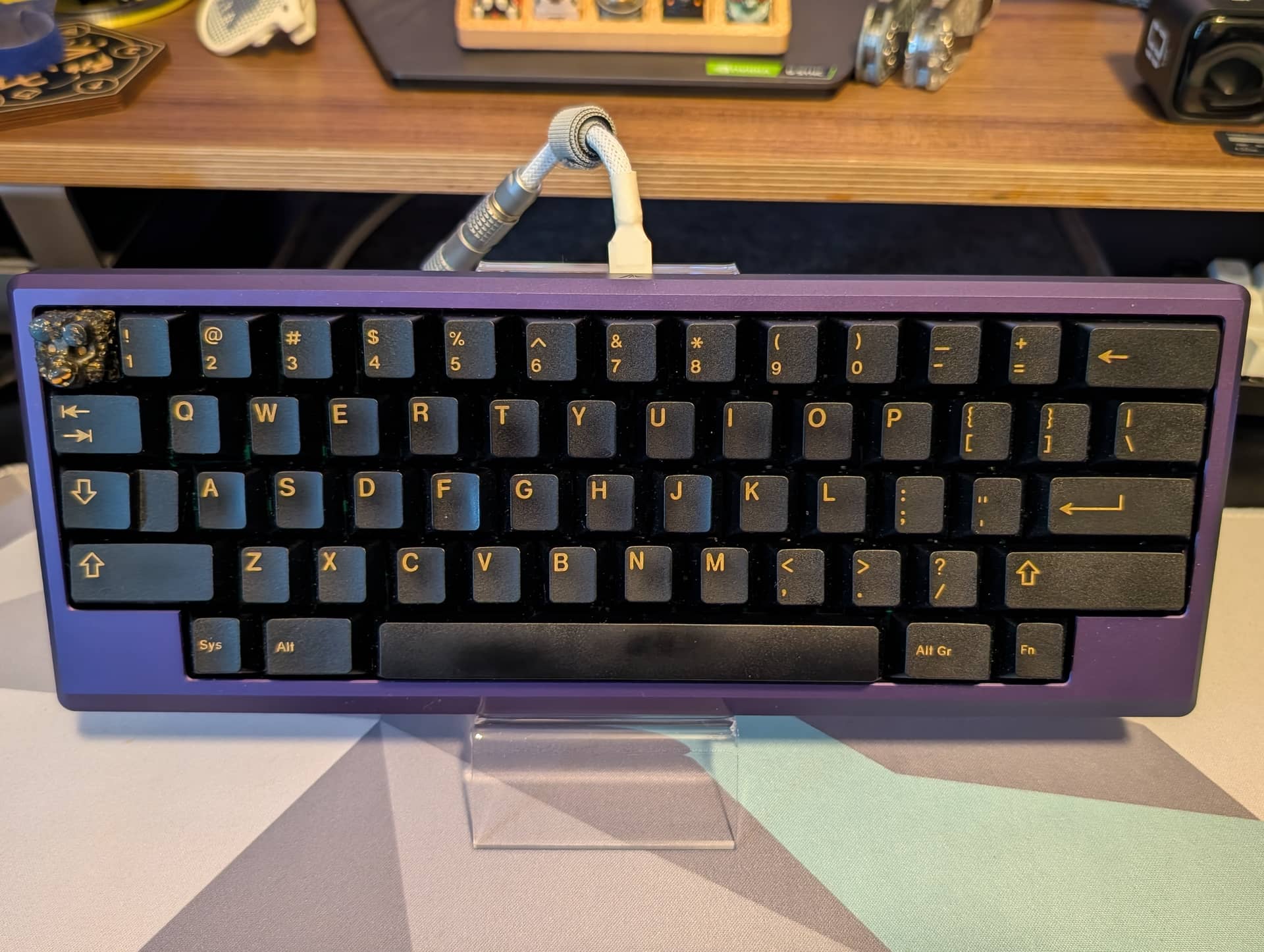 Just shining up GMK Black and Gold on my plateless Arc60 with U4Ts. Love this set and board, so it’s getting a lot of love and use right now. Artisan is Hecky Blackgold by Gooey Keys.