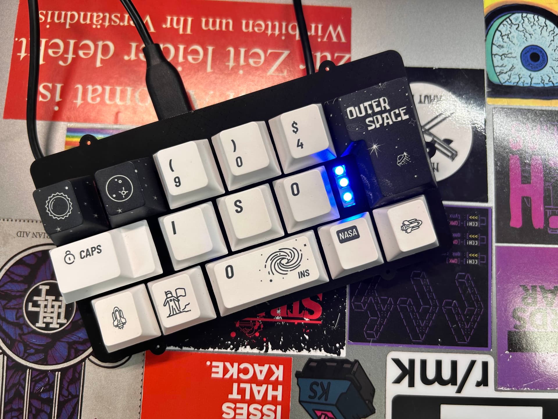 Perfect to use up extra caps! Love it! POG is super nice, and the only persistent issue I have with KMK is that I don’t know how to easily get my computer to recognize it from sleep or before the BIOS loads. I guess it’s also a bit annoying to muck about in KMK with two CIrcuitPython drives attached at the same time, but that’s rare enough not to be any major annoyance.