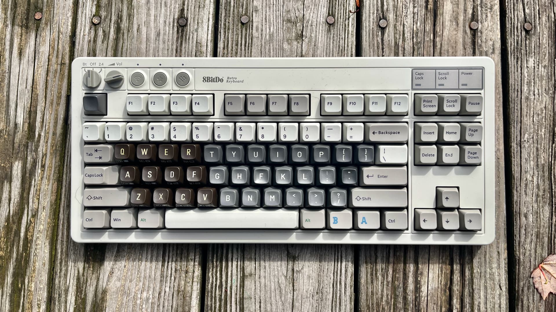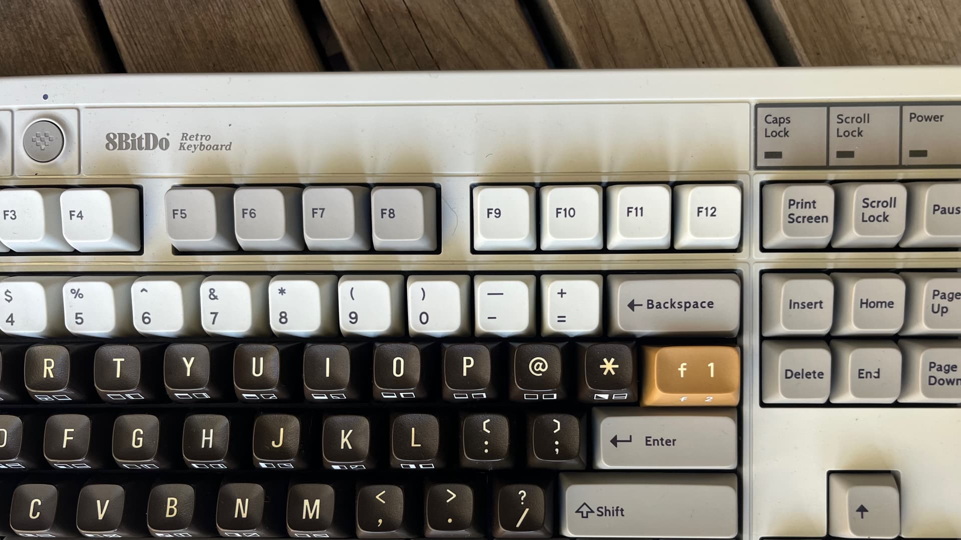 On top of the height difference, the C64 keycaps also have their own incline angle; to get the homerow to feel the same as MT3, you’d need to increase the slant of your keyboard. The C64 keycaps are also less sculpted than MT3, meaning they have more of a stepped progression along the rows that is a little more reminiscent of a typewriter. Neither of these two differences in sculpting has to do with the keycaps’ original integration with the Commodore 64, as its keyboard has the same incline as my 8 BitDo TKL.