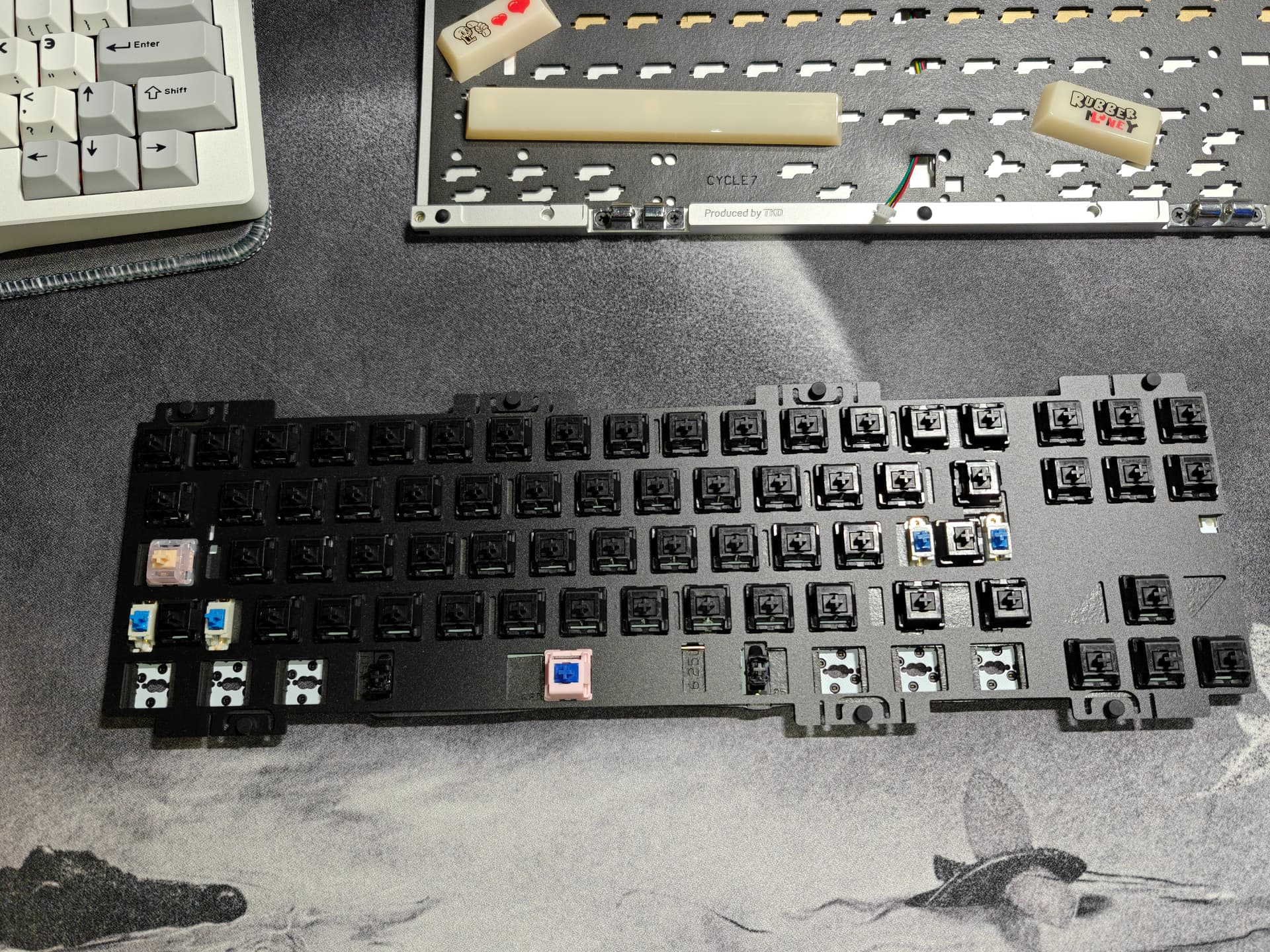 This was earlier this week but just getting to post - switched out my CYL Rouge caps for DCS Good Morning on my Hippo! I feel like I’m swimming in a pool under a blue sky. Outemu Pear switches, alu plate, no foam, blue picnic table deskmat