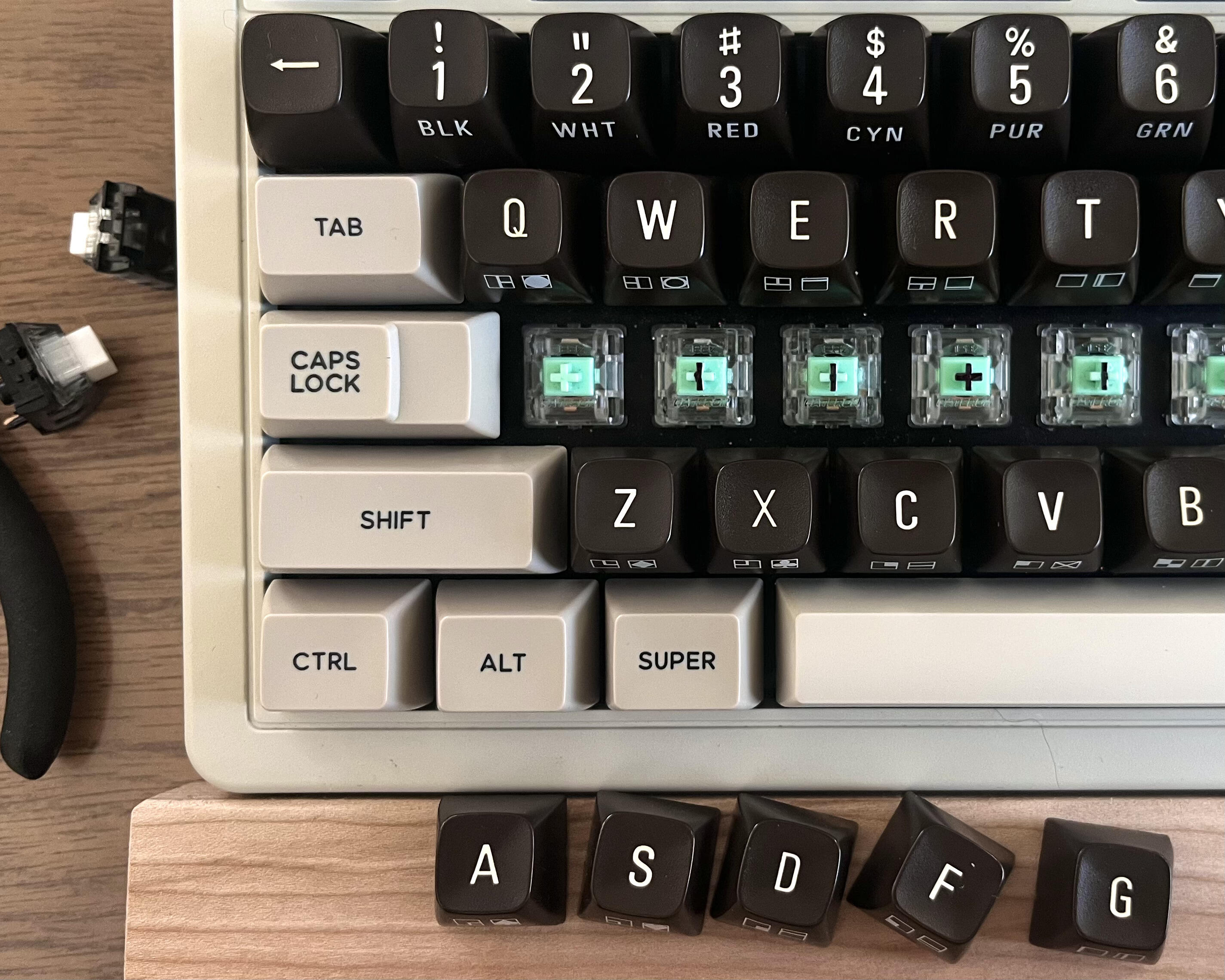The modding process isn’t consistent (it involves me bending the tactile leaf fractions of a mm with my fingers), so I have to mark the differences between switches and place them accordingly: