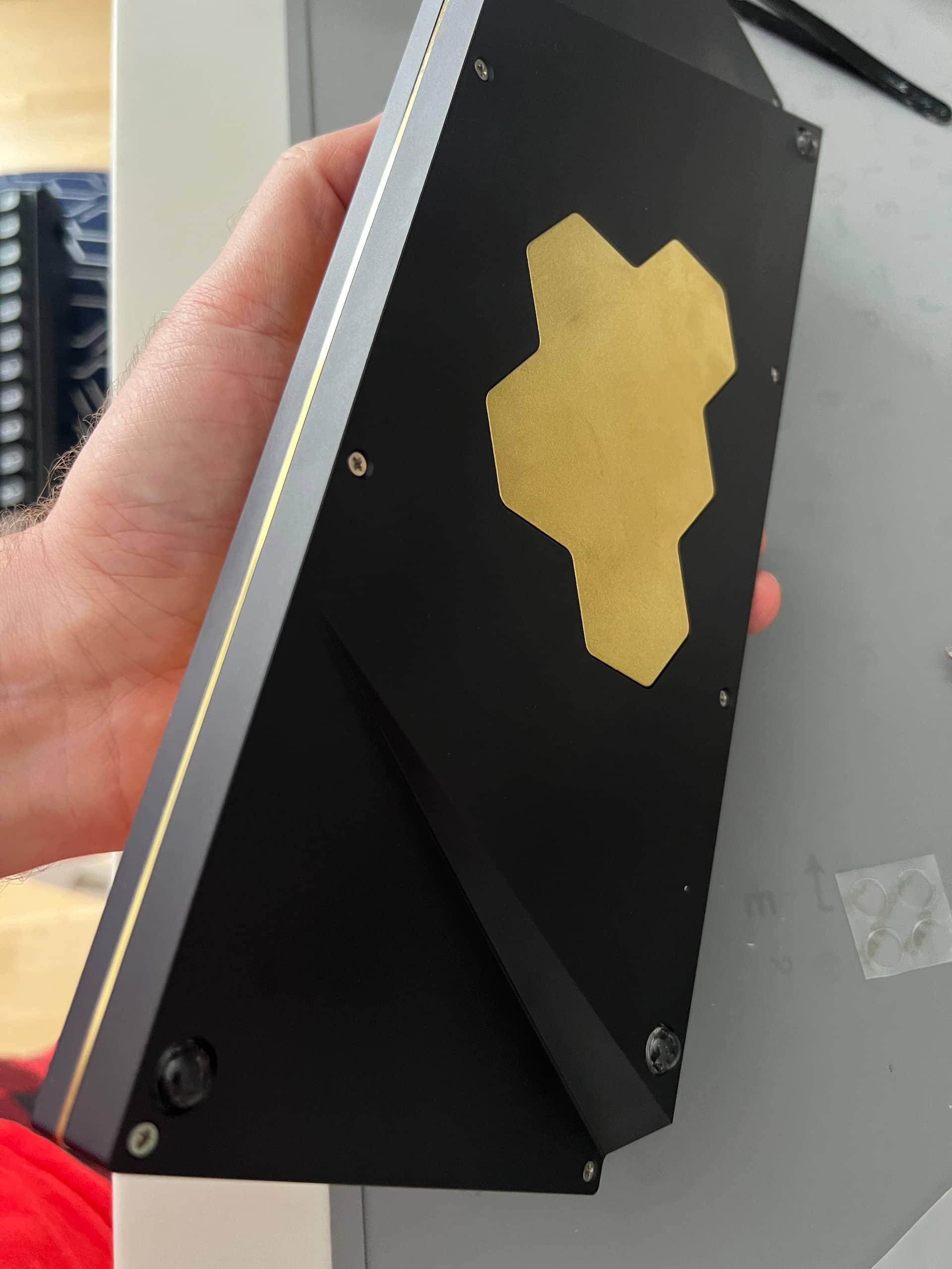 Trying something new with my laser dye-sub caps. My old jig indexed on a couple of standoffs, and I was having real trouble getting that last half-millimeter of alignment. I might still have that issue indexing on the sharp lower-left and upper-right corners of this plate (courtesy both of a piece of scrap just a skosh too small to use for the final switch-plate and a bunch of generic red switches), but at least any misalignment will be completely consistent. The SLK blanks are also just the tiniest bit wider at the base than most profiles, better to accommodate the travel with lower height I assume, so I needed some sort of new jig for them anyway. Pretty soon here, I will sacrifice a few 1u to testing.