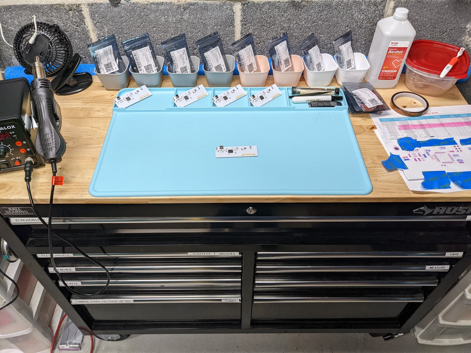 Going assembly line style is a slow & burnout activity. Part of the way through switched to printing a large copy of the PCB to paper laying out the parts then transferring to the PCB made things more manageable and enjoyable for me