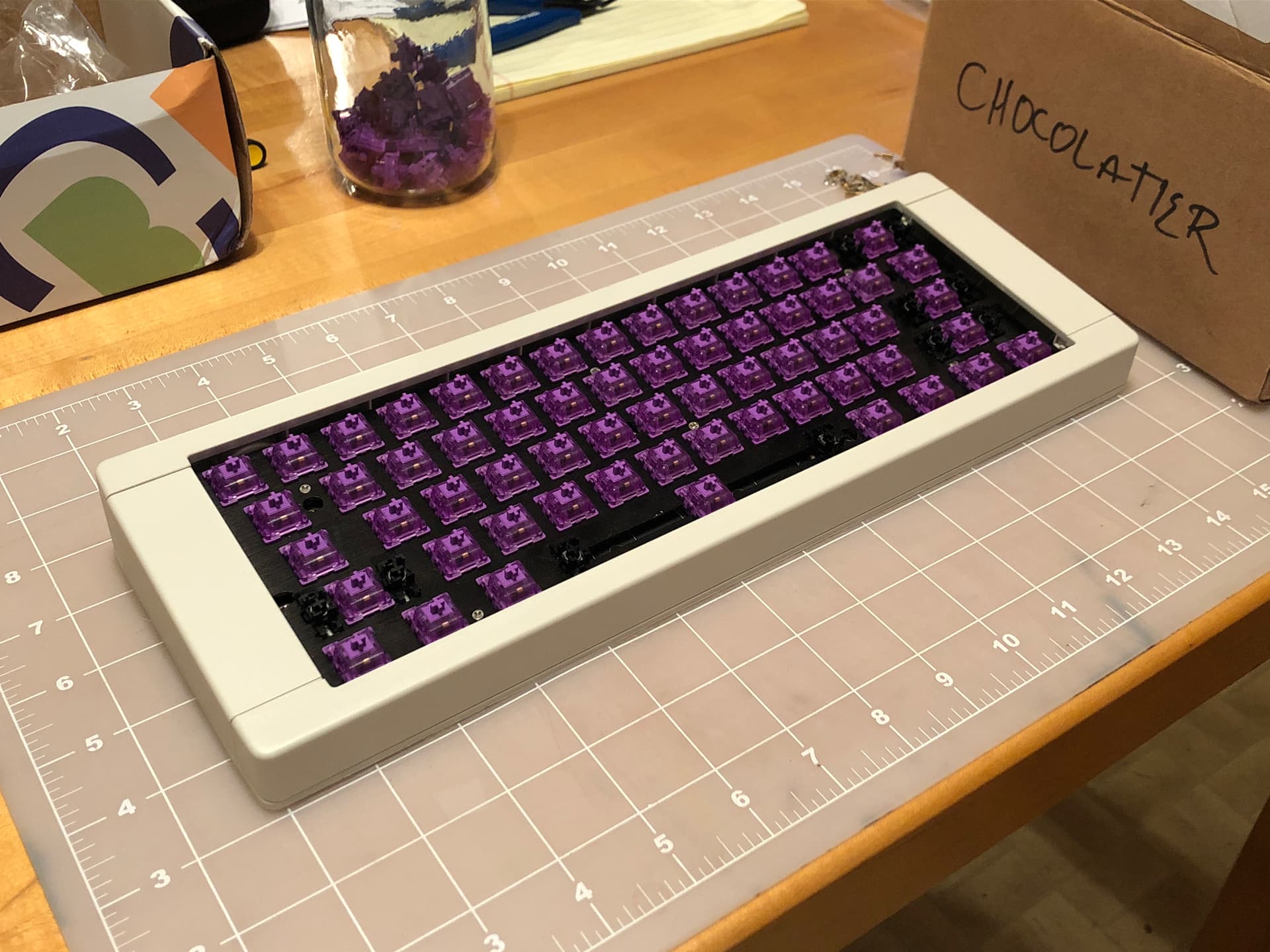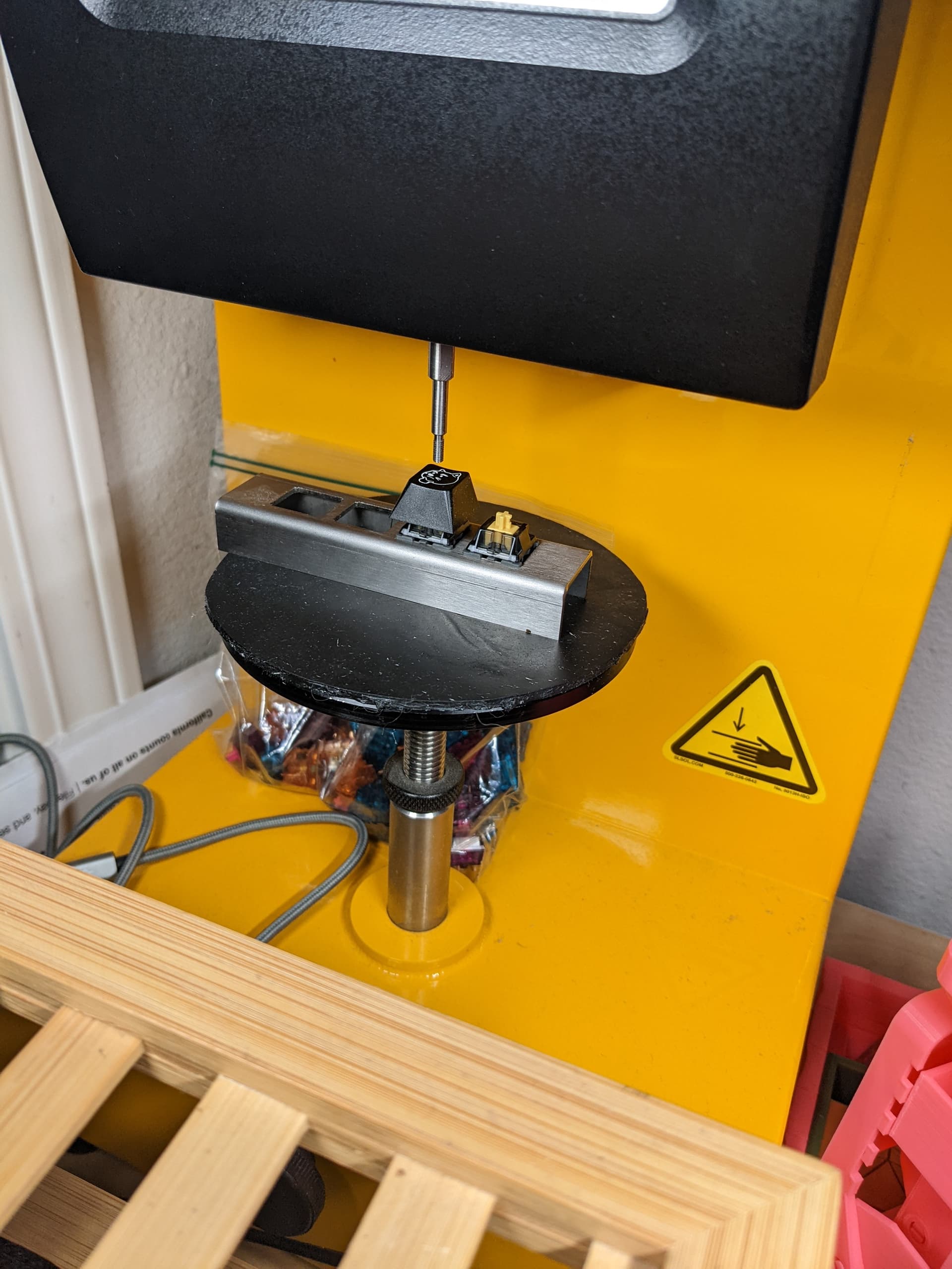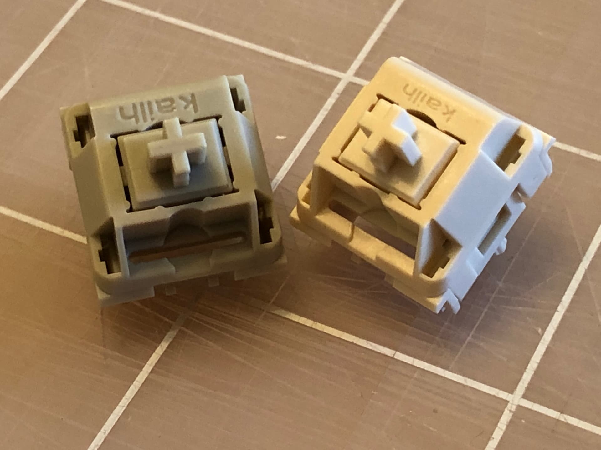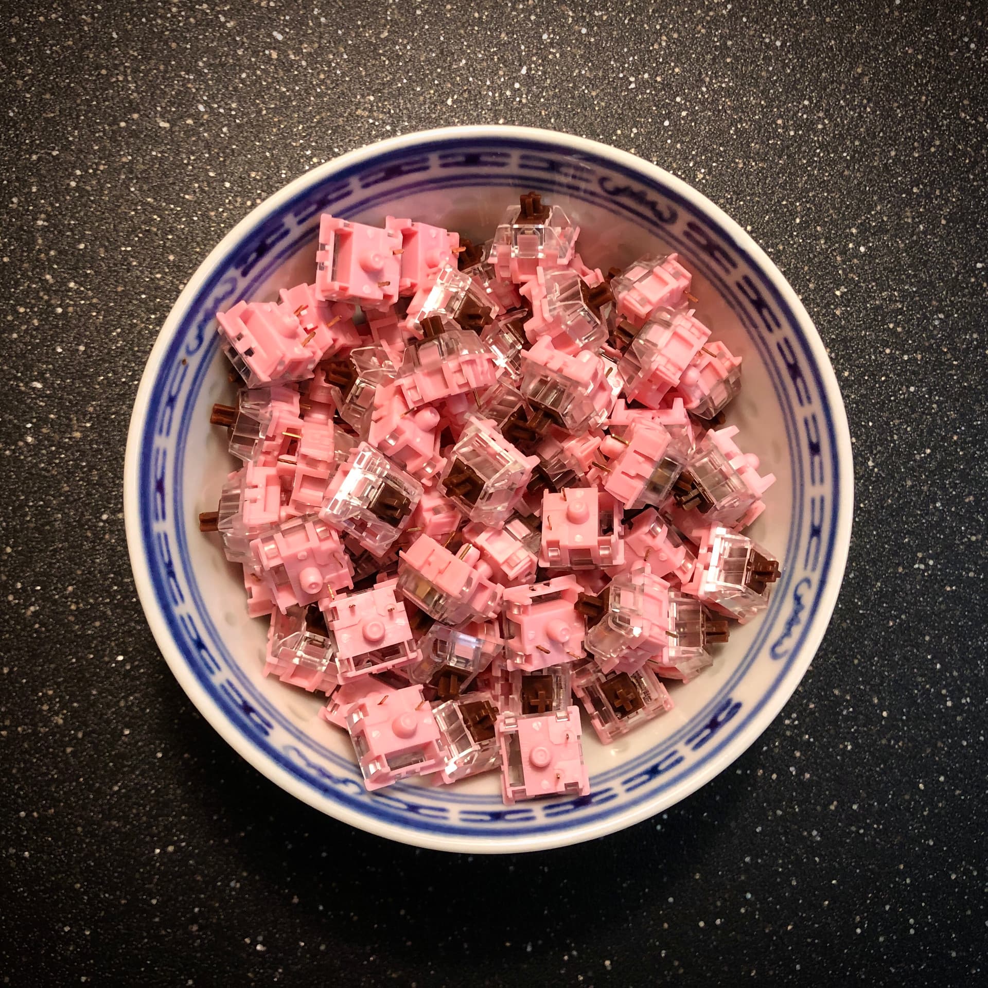 Dessert first; the fruits of today’s labor. (Yours are next, @Den-Fi!) Part of a low-budget build project, these switches are for a friend entering a WFH position who wanted something quiet. From a selection of 9 shushed switches, they chose these, the only frankenswitch on the tester: