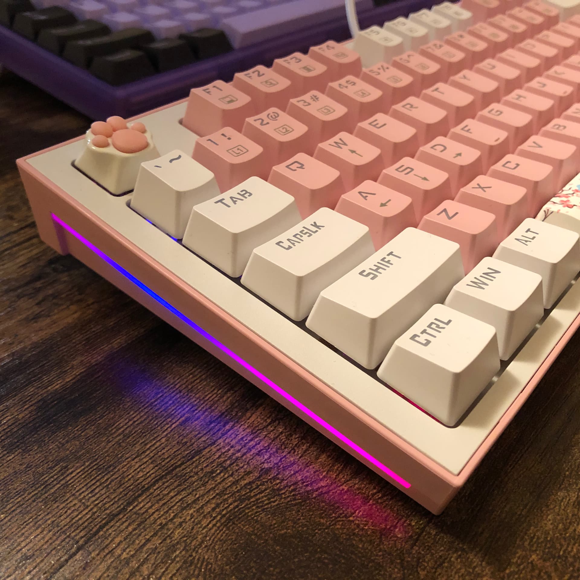 The Mt. Fuji and wind sock keys are from the Akko World Tour Tokyo set. The ESC key is one of those cat paws; this one has a painted metal cap with smooshy silicone pads.
