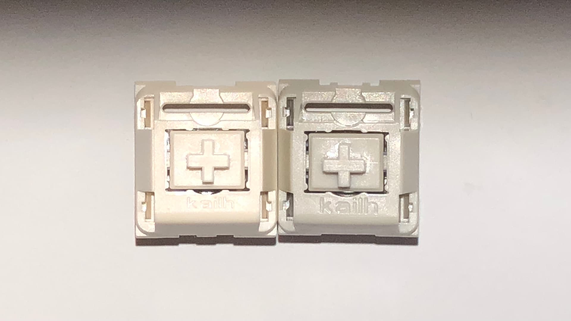 Seen above, the Bobagum tops I decided not to use after some felt a little sluggish. Swapping-in the with-slot clear tops did the trick while preserving better tolerance than the stock Silent Browns.