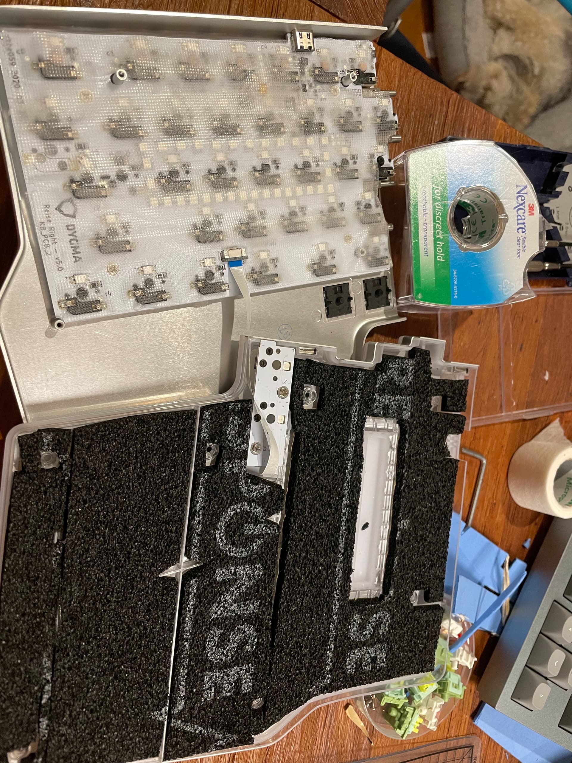 - tried honeycomb foam on the Dygma Raise which was not as effective as the butyl stuff (interestingly it made the Keychron sound lovely, but was too thick for it to keep the bounce). On the upside, it only took 15 minutes to cut and apply for the Raise vs 2 hours for the finicky and sticky Butyl.