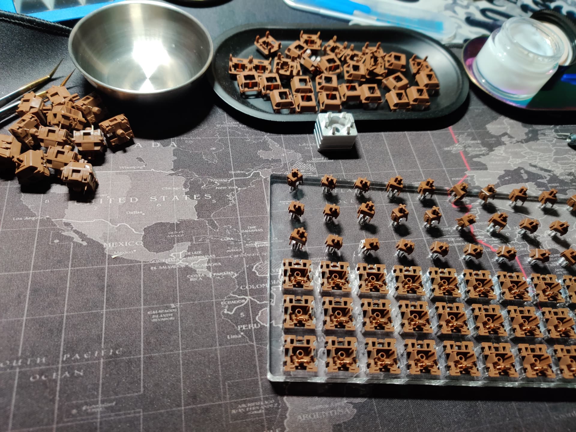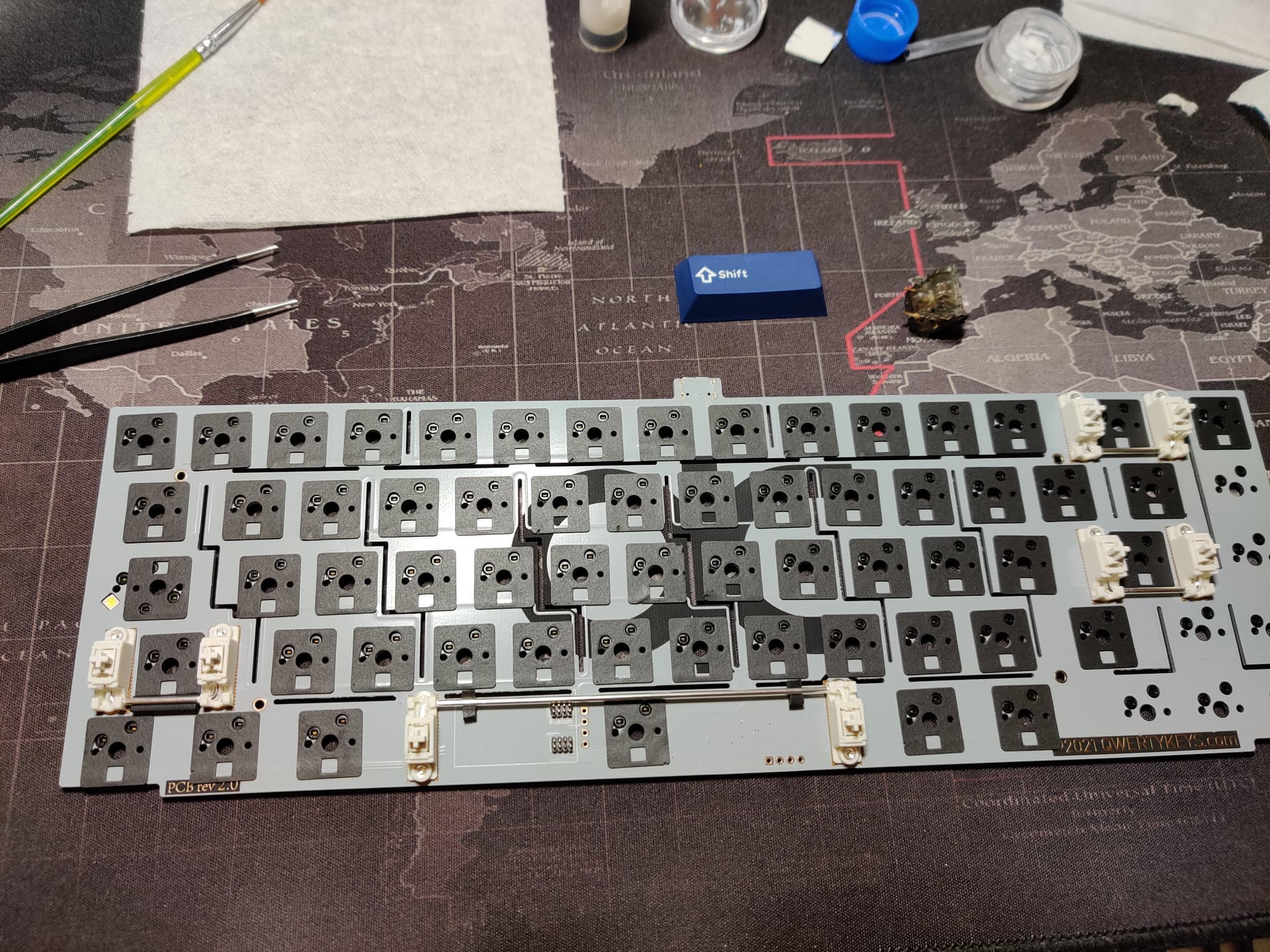 I finished desoldering a couple TKL PCBs to swap plates around this morning, then rebuilt my KFE CE with a 1mm CEM3 PCB on a POM half plate. It feels really nice now, with a very soft bottom-out.