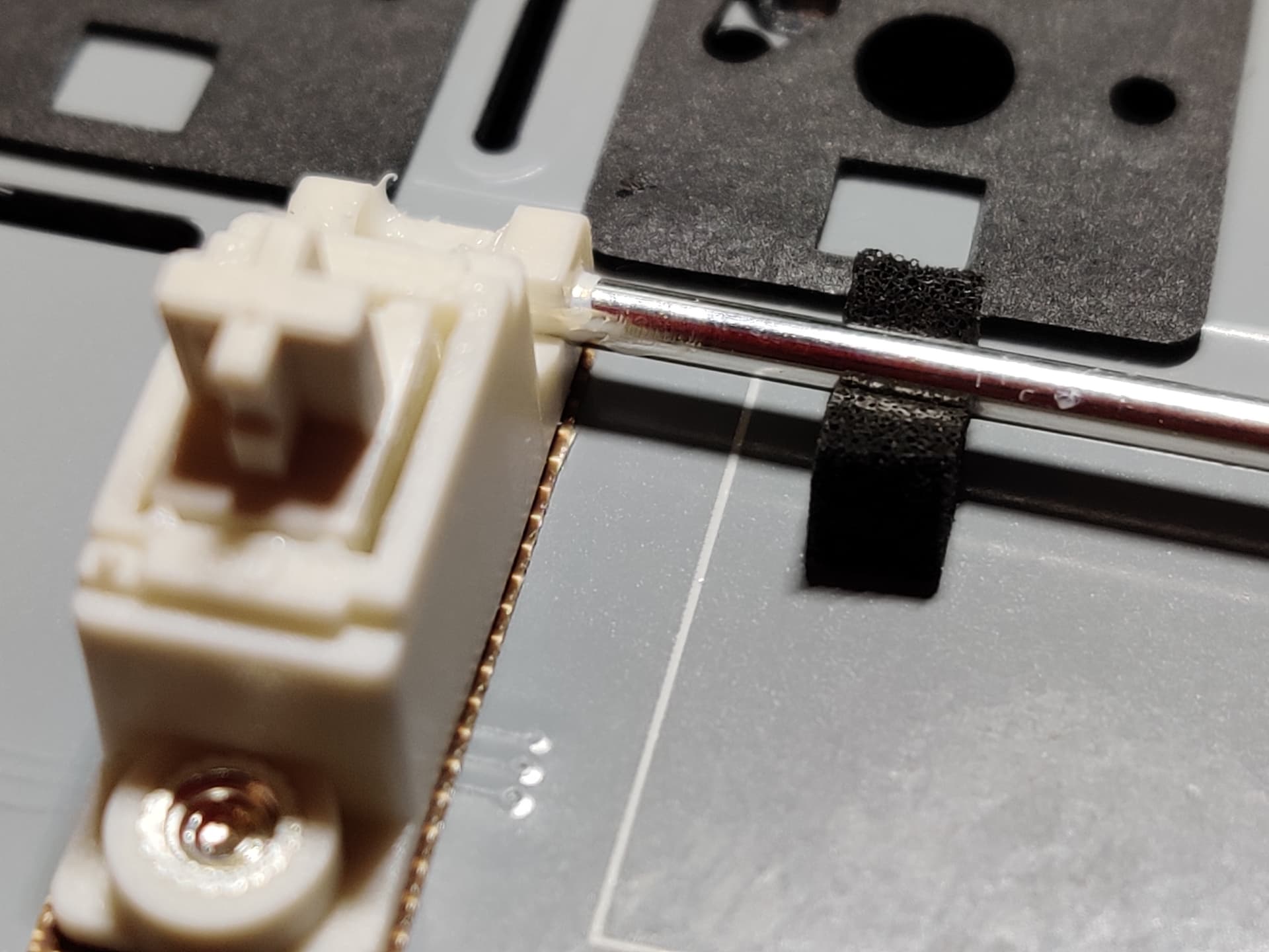 Testing stab lube after 6 months of everyday use. I swear, that Nyogel is pure silicon magic. It has the consistency of honey while still being greasy as all get-out. It keeps the upstroke deep and knocky. Almost like chess pieces moving around on the board … that velvet and hard wood percussion sound. Neat.