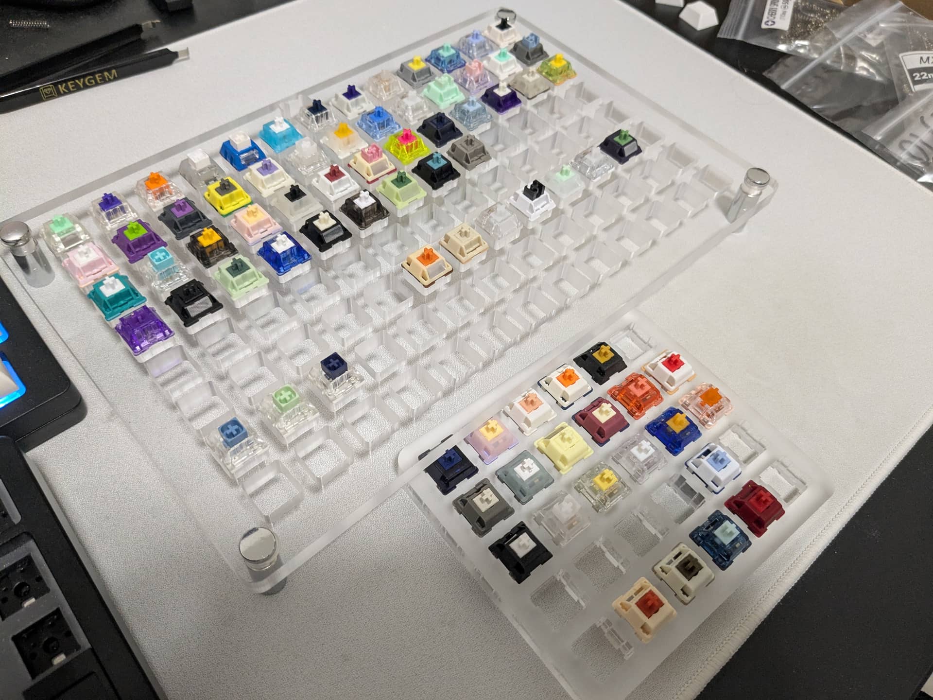 So right now I’ve got around around ~80 different tactile switches in switch tester(s), I should probably make a list at this point I realized switches are, to me, the most interesting (and important!) thing about building custom keyboards